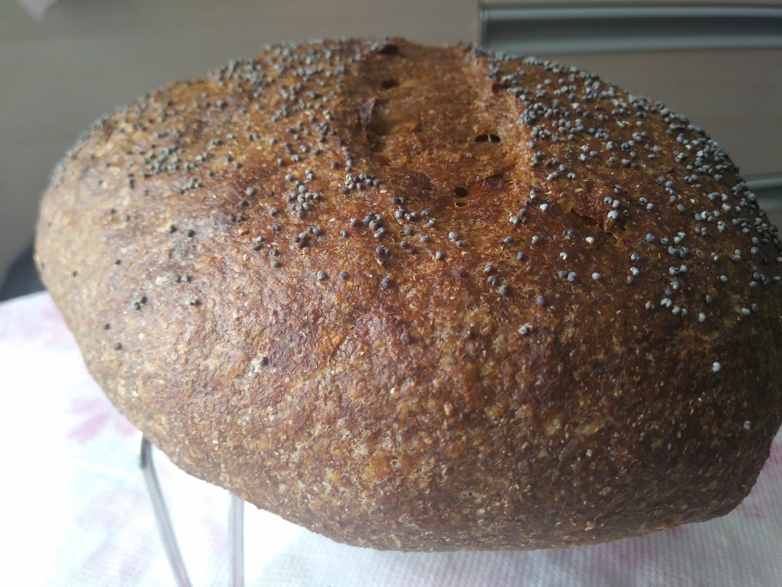 Preheat the oven at 230°C/446°F. Remove the dough from the fridge to warm up at room temperature for 40 minutes. Spray the dough with water and sprinkle the poppy seeds onto its surface.