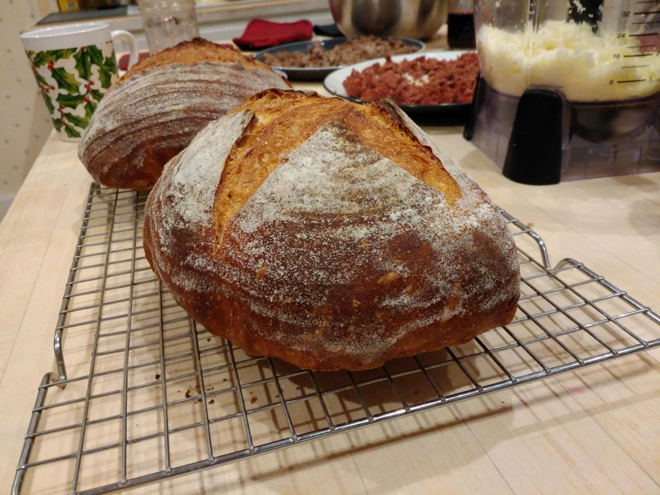 • I wasted a ton of electricity keeping the oven preheated while waiting for the loaves to finish proofing. I need to figure out a more efficient way to do this. Probably, need to figure out how long preheating everything takes, then, work on being a better judge of how much time is left till proofing completes.