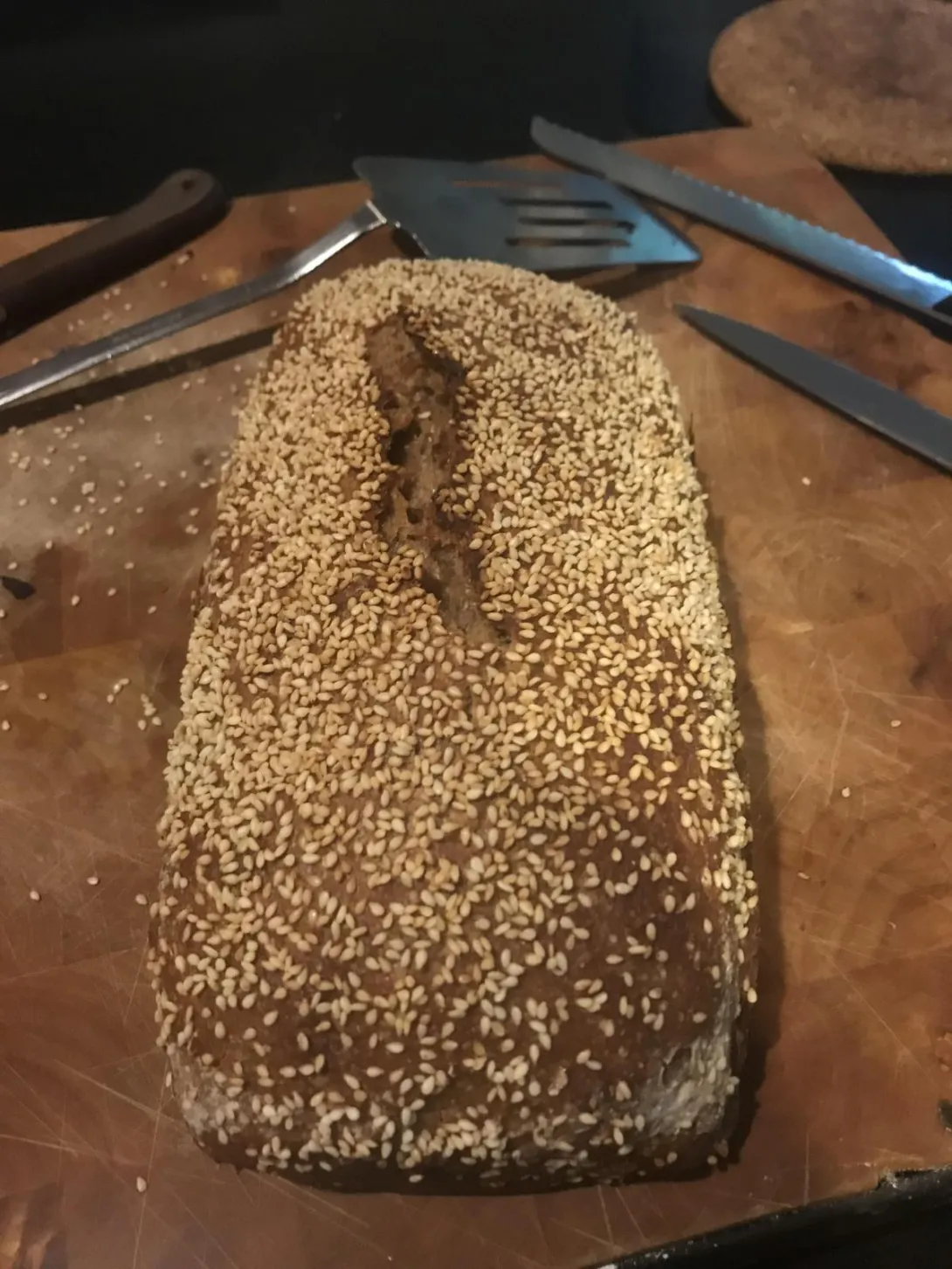 Einkorn and Rye Bread Topped with Sesame Seeds