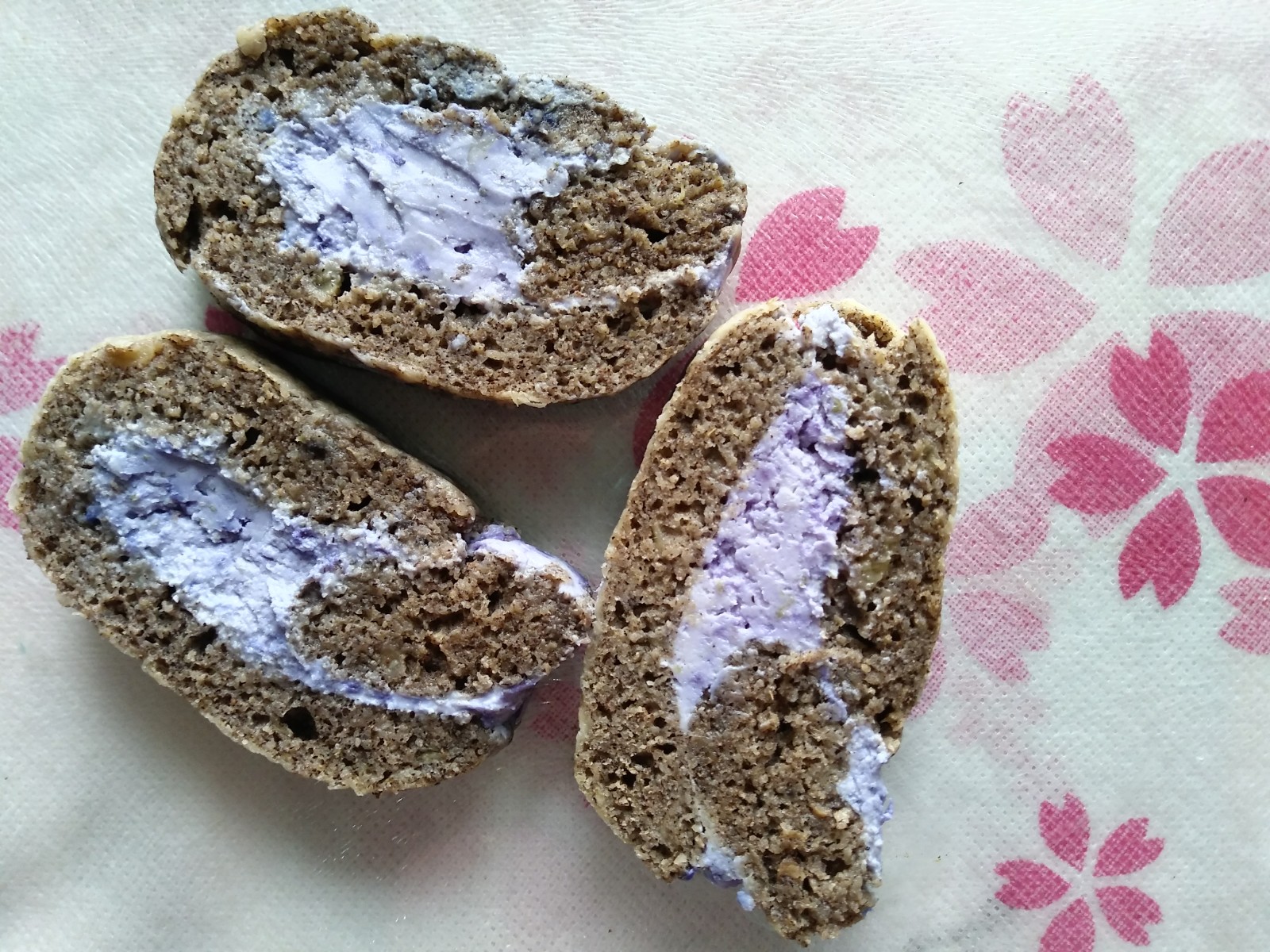 When the bread is cooled, spread the filling onto it and slice into thick slices to serve.