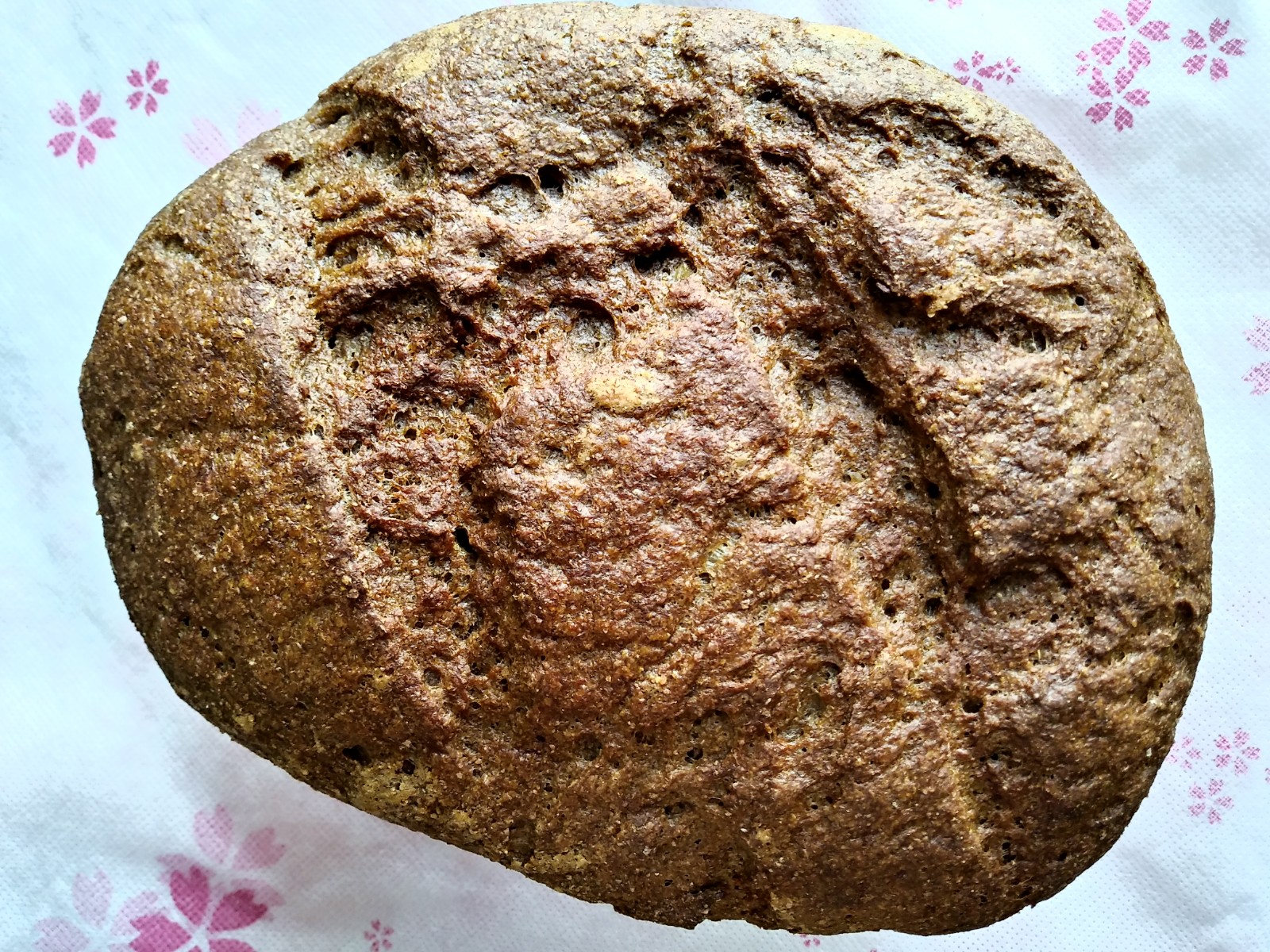 Score the dough and bake at 230°C/446°F with steam for 15 minutes then without steam for 25 minutes more or until the internal temperature reaches a minimum of 208°F. Let cool for at least 2 hours before slicing.