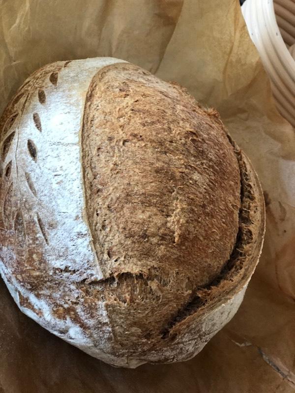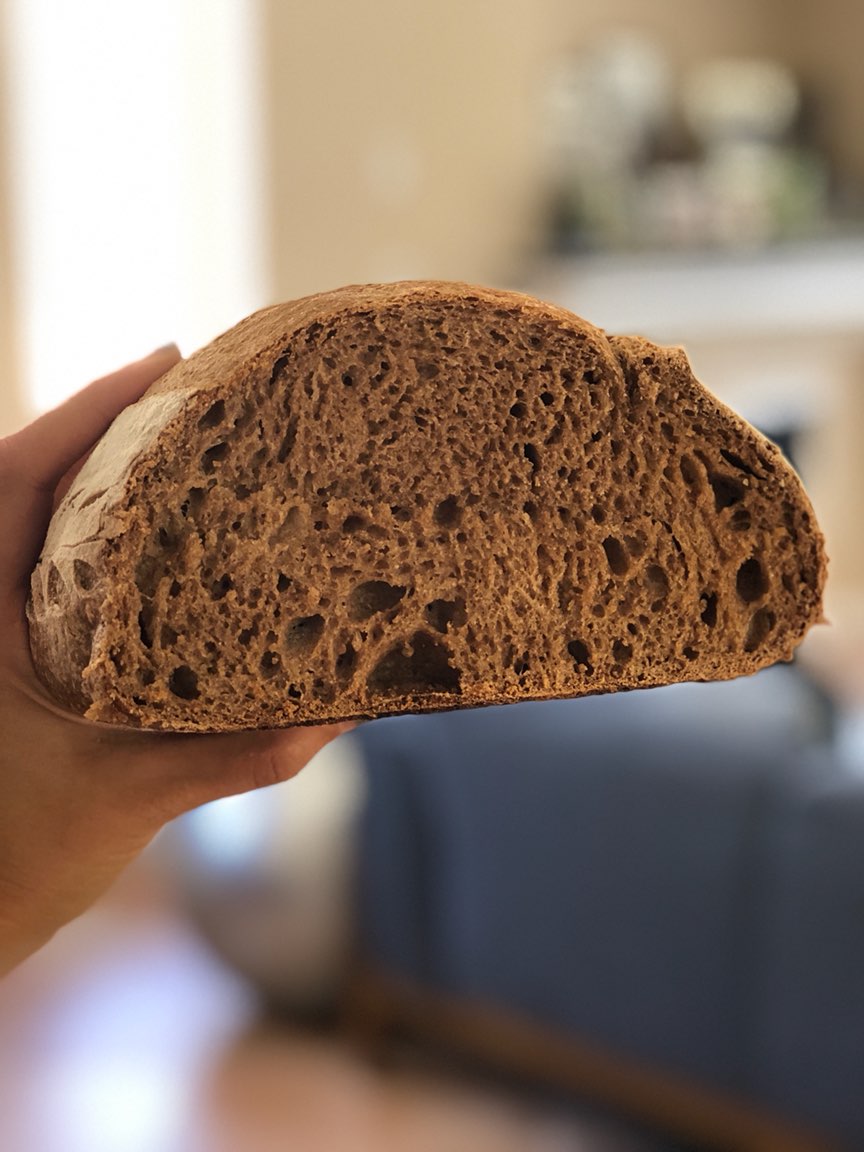 So this is the loaf I baked from the "Bread Flour" from bulk barn, it definitely taste like a whole grain bread. It got the oven spring but the crumb is stiff and dense.