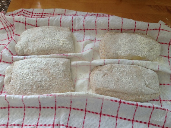 I divided again and put on heavily floured towel for room proof at 30min....and then on baking sheets...which again was a very sticky affair...lost some bubbles on the way for sure with my handling....