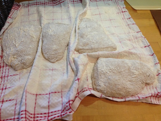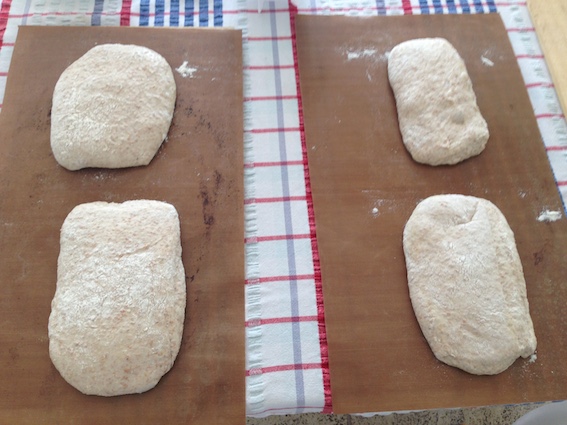 I did not do really very much with the dough. I just let it fall out of the well oiled container and then divided without doing anything else. A bit like in the