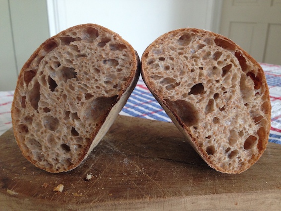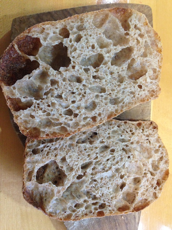 Maybe I need to re-think the shaping process. The aveoli look like those in a well shaped loaf. I really like the image of the bread in the basket.