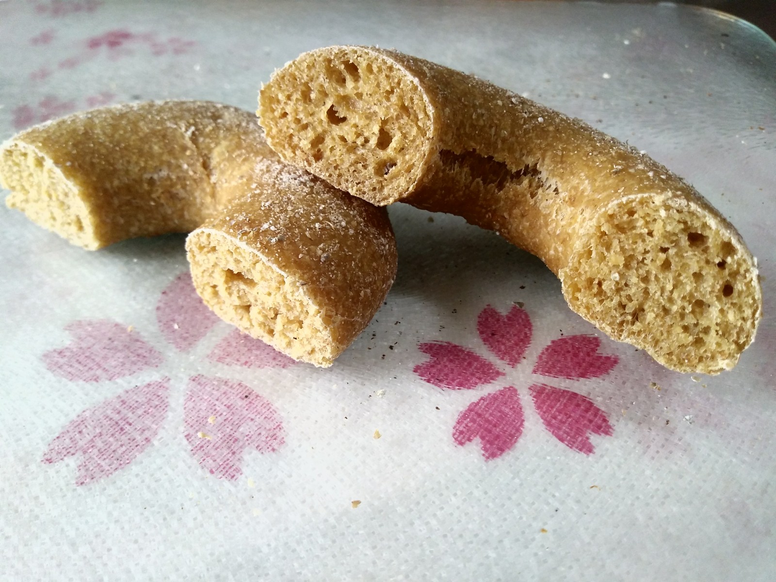 The crust is thin and crispy and the centre is surprisingly chewy. Thanks to the banana, these rolls have a close crumb. However, they’re also very moist so it’s not unpleasant to bite into at all.