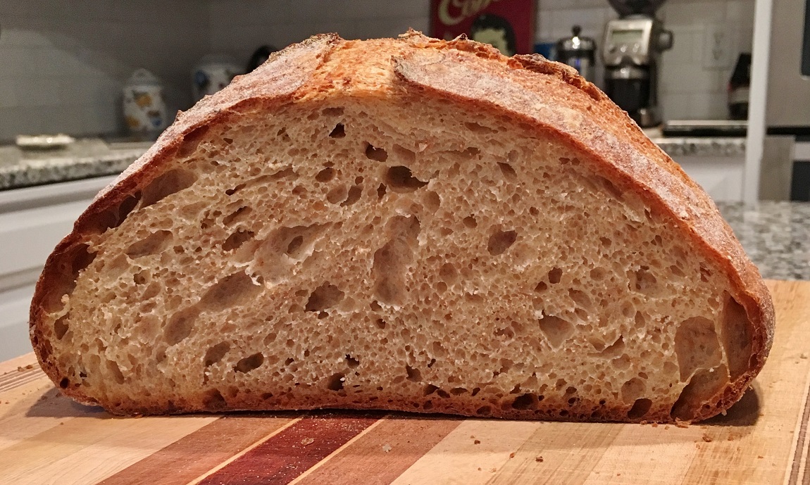 The bread is great by itself as well as with butter, toasted, and with other toppings.  If you decide to make this bread, and especially if you are accustomed to the pace of a sourdough loaf, be alert and watch the dough during all phases.  I began a shade before 8:00 am and took the baked loaves out of the oven before noon.
