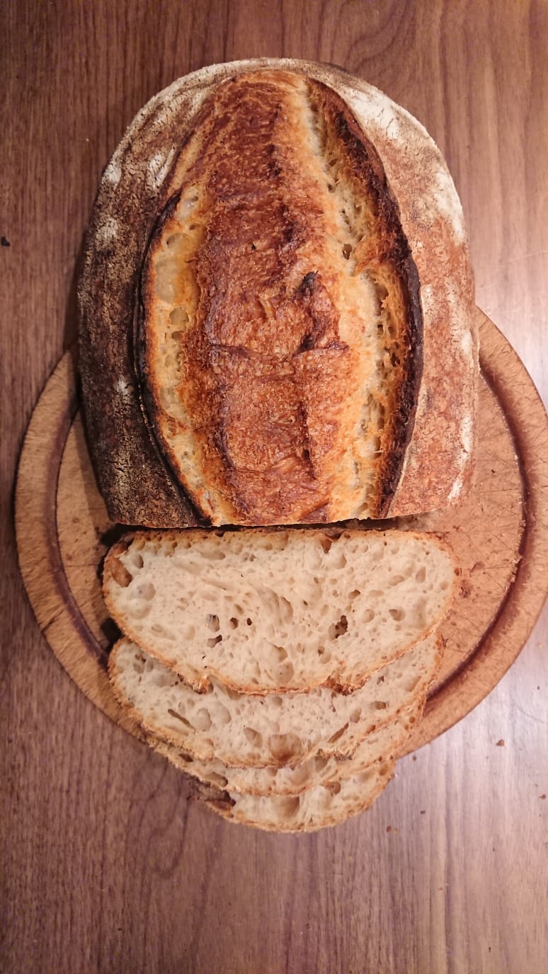 This is a 66% hydration sourdough (10% rye, 90% Gold metal BF).  Starter was taken out of the fridge on Sat morning, levain was built, left to rise until around 9pm, then mixed with the remaining flour, water and salt.  4  sets of S&F about 45 mins apart each (didn't really keep track of time), then the bread was pre-shaped and immediately shaped at around 1230am, I didn't think I managed to get much tension because 66% is wetter than I'm used to and it was a bit sticky, so I half-panicked.  It then went into the banneton and into the fridge until Sunday 530pm, then left to warm up on the counter for about an hour and a half and baked in a 300C oven with steam for 20 mins, then another 20 mins at 230C.