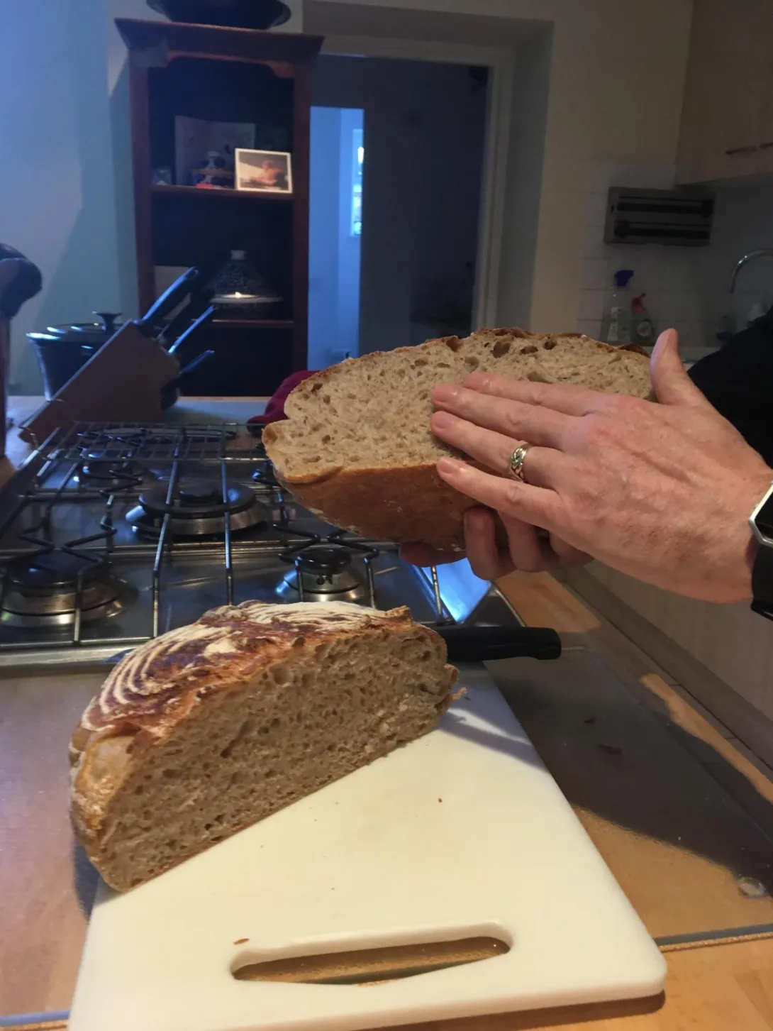 After at least a month trying to get a sourdough starter going, I finally succeeded (thank you rye and pineapple juice!) and made my first loaf. I’m happy overall, made a country boule (about 60% white BF, 30% very strong WW and 10% rye), good flavor and crust. It was a bit too big and pillowy for my Dutch oven so thinking I may have overproofed? About 4 hrs BF then overnight in the fridge and about 2 hrs on the counter to come to room temperature before baking. Any suggestions? Thanks!