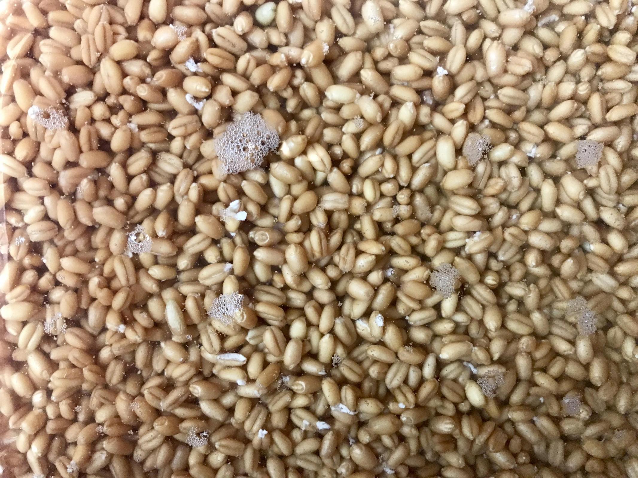 I am attempting to bake my first sprouted grain bread. I followed Rienhart’s instructions to soak grain in spring water for 2 days. Use 1 part grain to 2 parts water by weight. Rinse and change water daily.