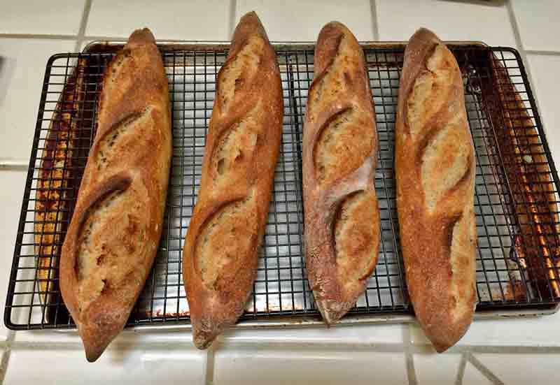 There really was enough bread in the freezer for most of a week, but I had an irresistible urge to bake bread, and I had promised to make a 75% whole wheat sourdough with home-milled flour, and last week's SJSD baguettes were so good and so gone ... ?