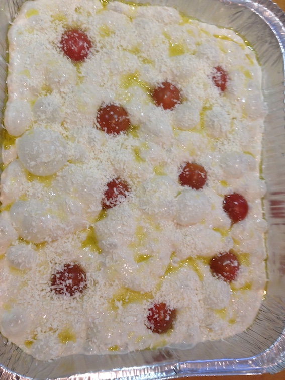 That finger poking thing was sooooo much fun and added olive oil and some tomatoes and a bit of parmesan cheese.....I was not allowed to add peppers...
