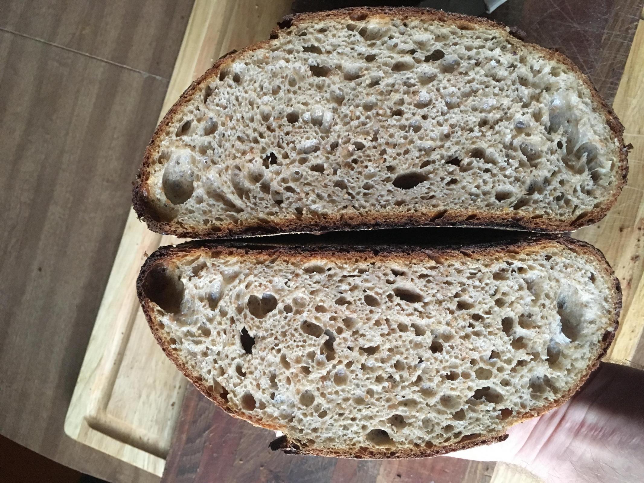 This was my first time adding spelt to this mixture, otherwise I would just do 80% sifted wheat. The results at first glance were great- take a look at the photos- but upon further inspection the interior had a texture actually of being 'underbaked' and almost dough-y gummy.