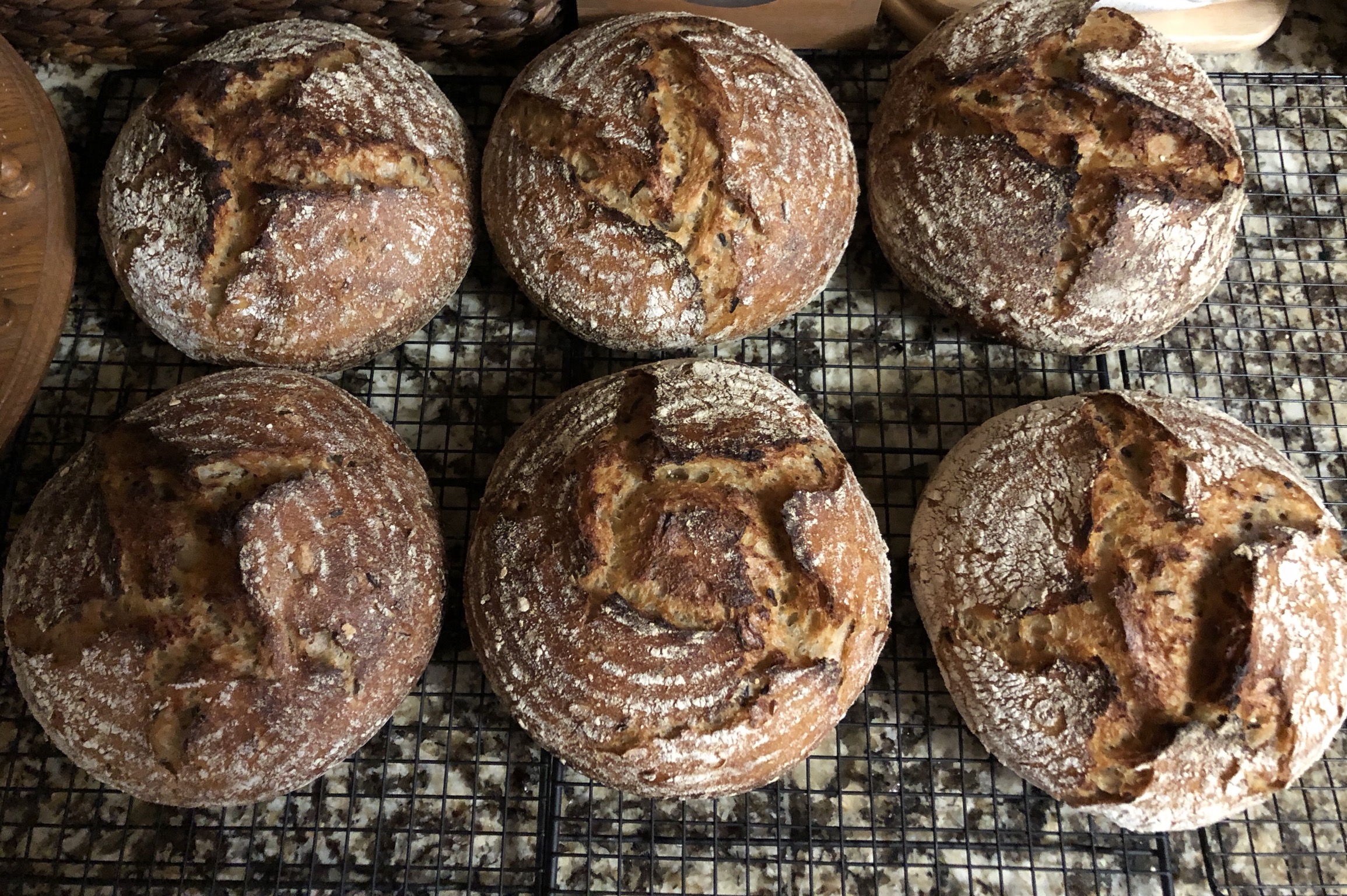 - Sprinkle rice flour in the bannetons. Place the dough seam side down in the bannetons, cover, let rest for a few minutes on the counter and then put to bed in a cold (38F) fridge for 9-10 hours.