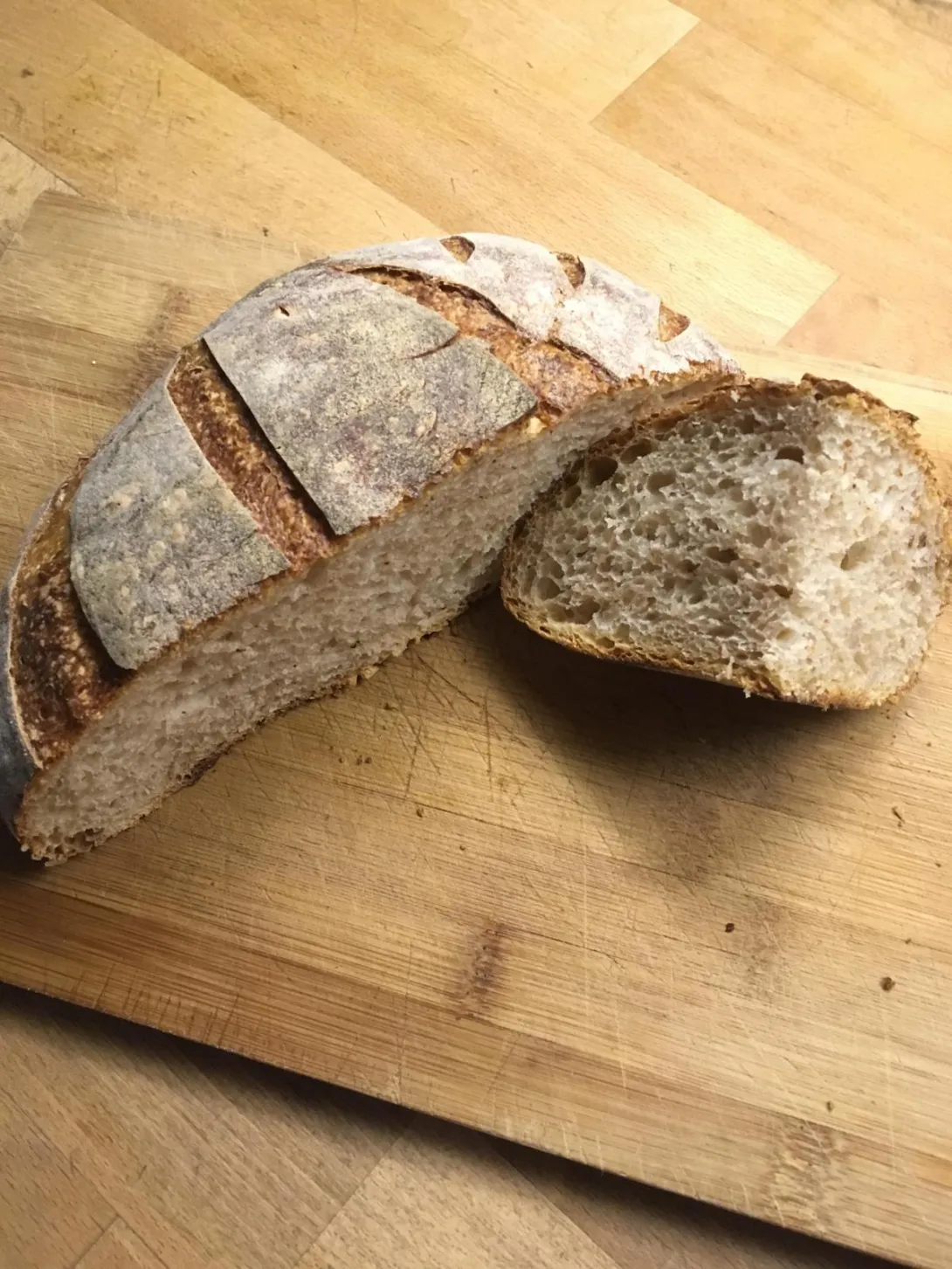 As you see the leaven percentage and dough weight is the same (minus the salt) but with a slight variation to the wholegrain. Less flour but more water to make up for the wholegrain. Very similar!