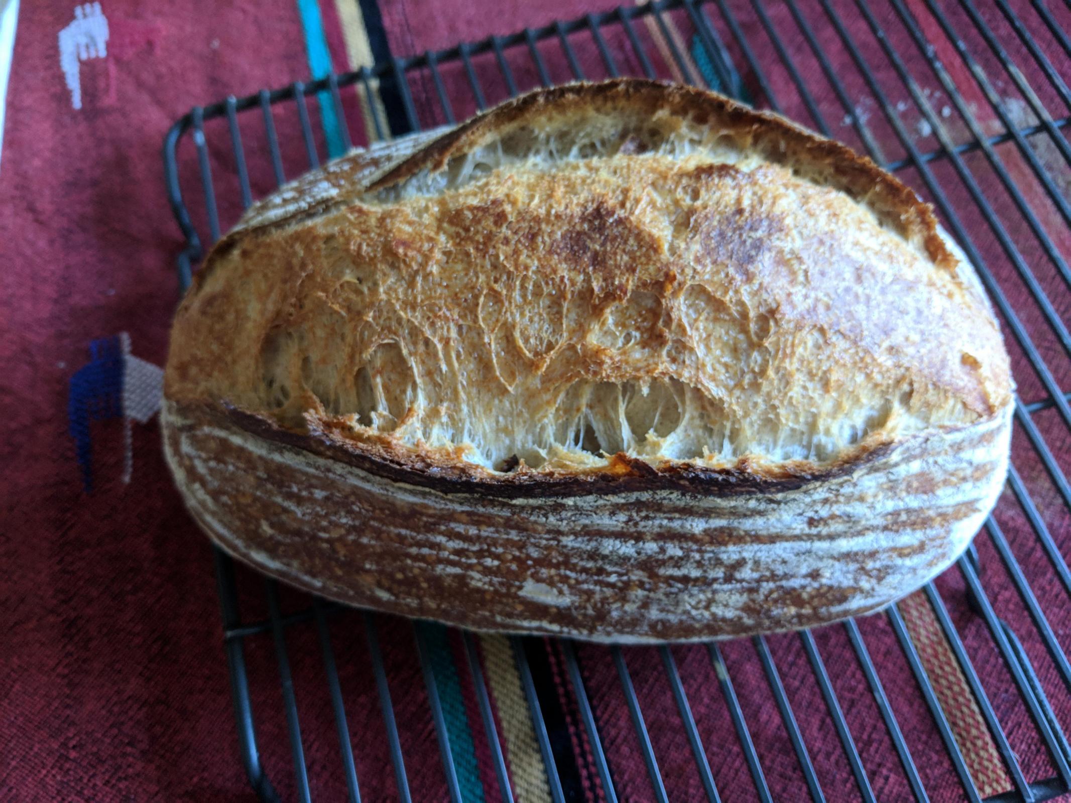 Recently purchased a dutch oven and am very happy with how this batch came out. I'm still using the tartine recipe, though I am adding about 50g of rye flour.