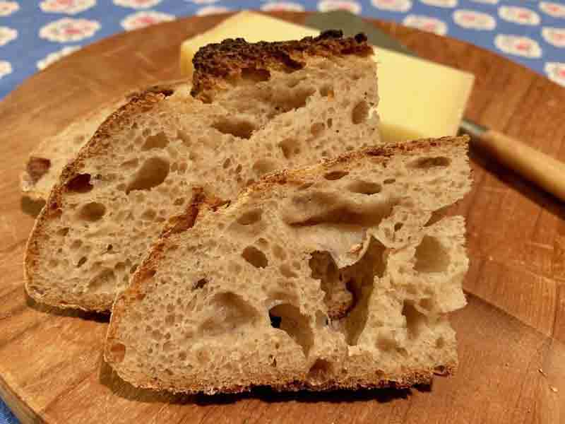 Last week, I returned to a bread with 30% whole grain flours and 81% hydration. The crumb was more open, and the crumb was cooler and less "dry" feeling. The flavor was subtly sweeter. I think my 40% whole grain breads need higher hydration, even than 83%. Stay tuned!