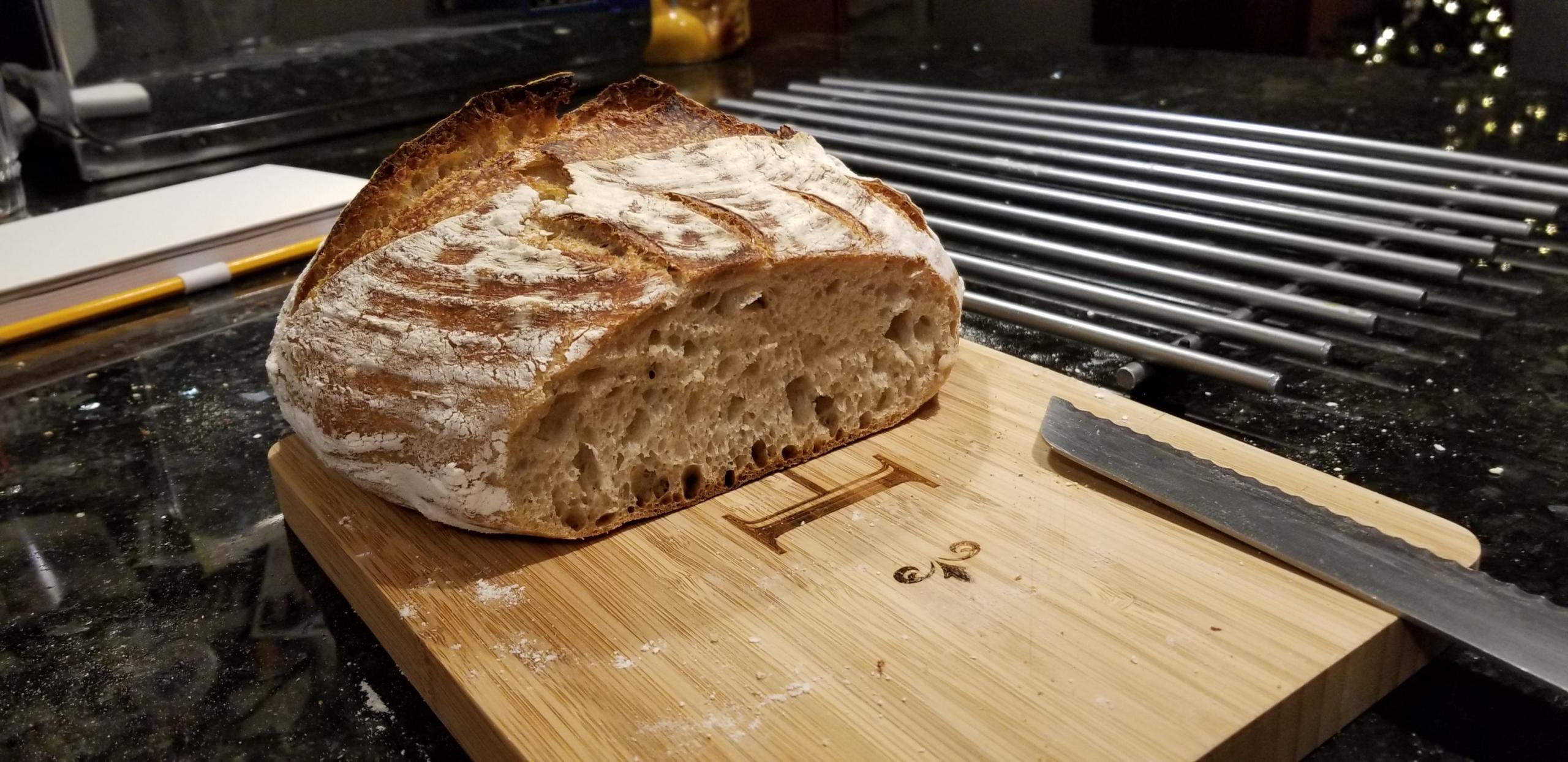 The bulk rise took about the same as the levain build since I evened out the %. I was able to form the dough about 5.5 hours later, but then had to overnight the proofing and bake in the morning. Then in the morning I let the dough warm up for 2 hours and then baked. The results were at least more predictable, but still kind of sour.