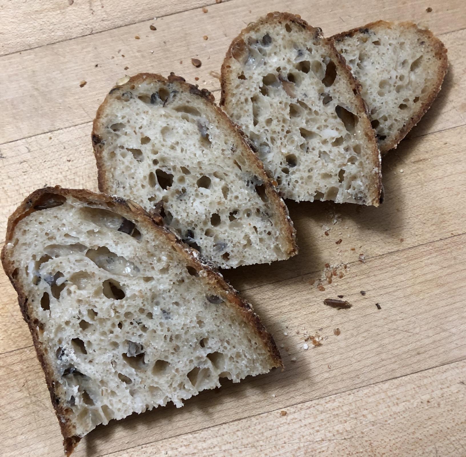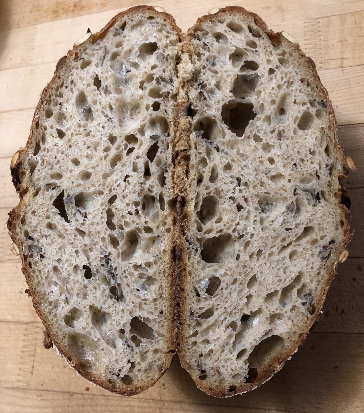 The oven spring was pretty decent considering how wet and floppy this dough turned out. I definitely have some learning to do to adapt  to using a mixer.