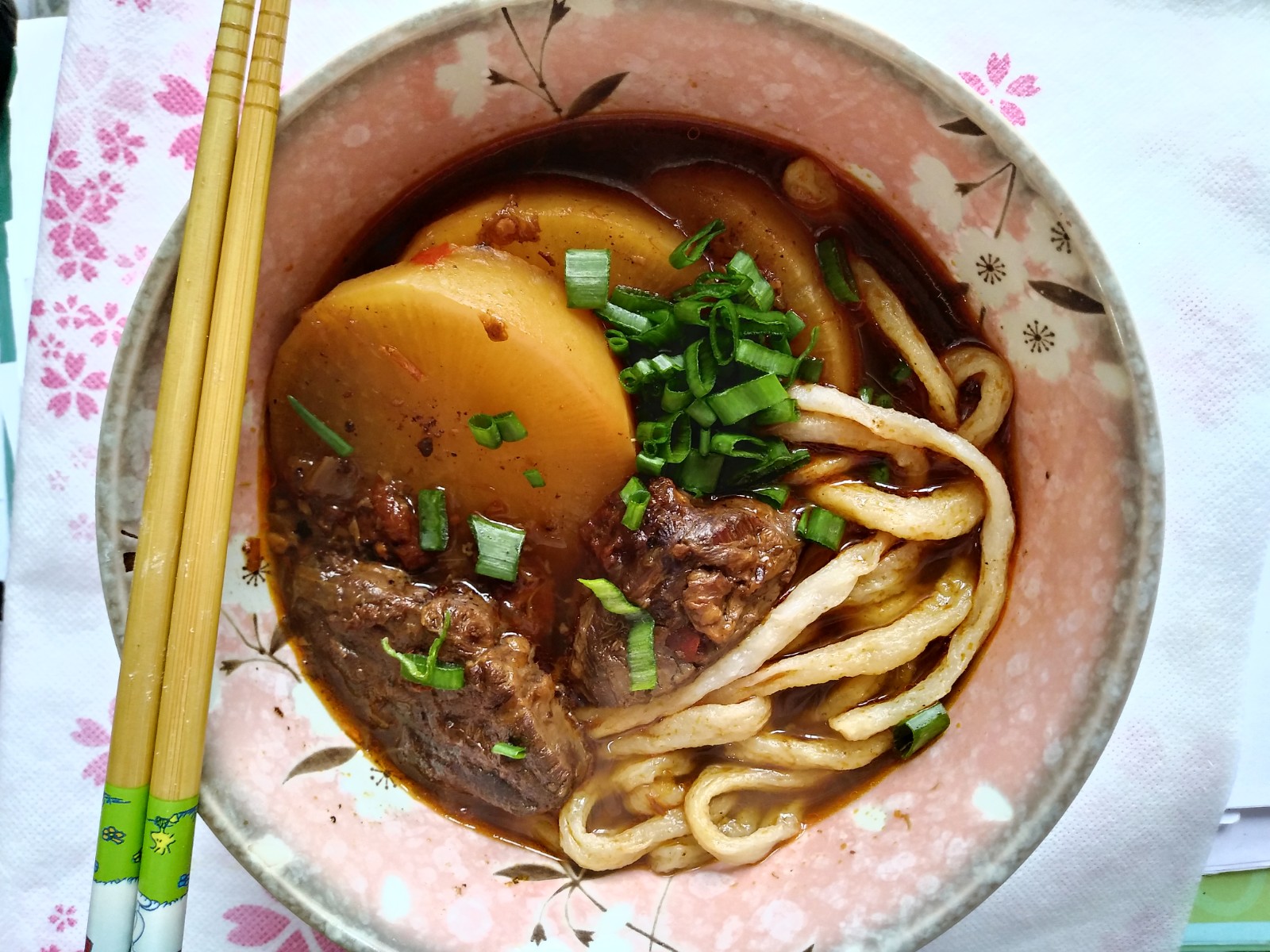 I'm the kind of person who prefer thick noodles (I mean REALLY thick and chewy) to thin ones. However, I tried to stretch the noodles thinner as the dough kept snapping back (I used high gluten bread flour to up the chewiness) and I knew they'd puffed up in the boiling water. Yet you know what? They still came up thicker then expected and were almost too chewy. It means huge when I say that because overly chewy doesn't really exist when it comes to noddles and bread in my opinion :) You can't buy noodles and dumplings like these elsewhere: they have to be home-made. I probably won't have time to make them when the holiday ends though...