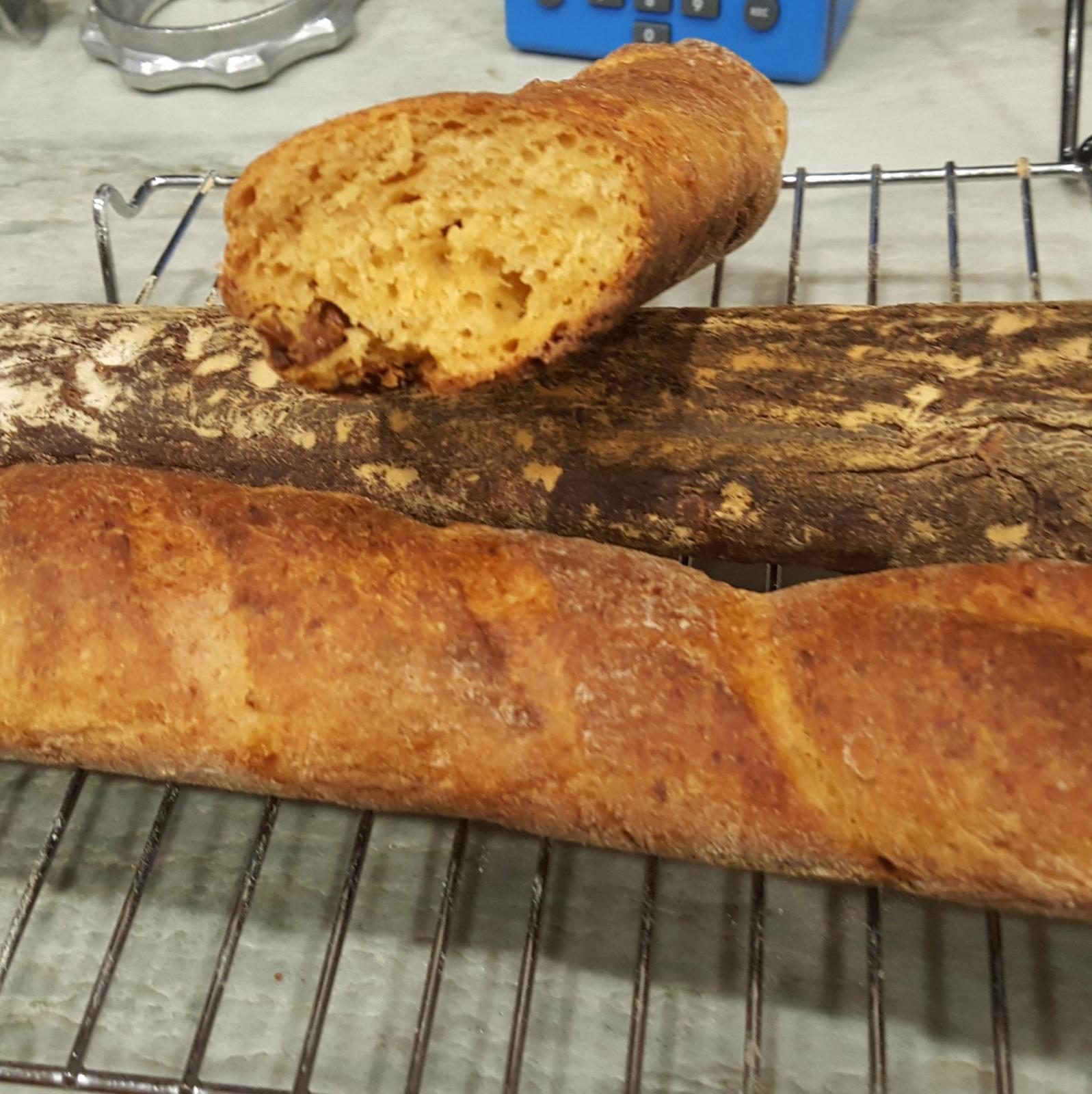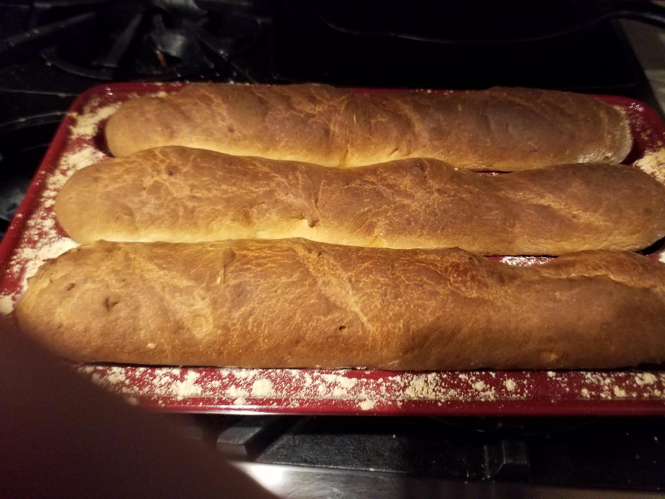 I honestly didn't think the baguettes would rise at all, but they did. The flavor was really good, but that crust was too hard.