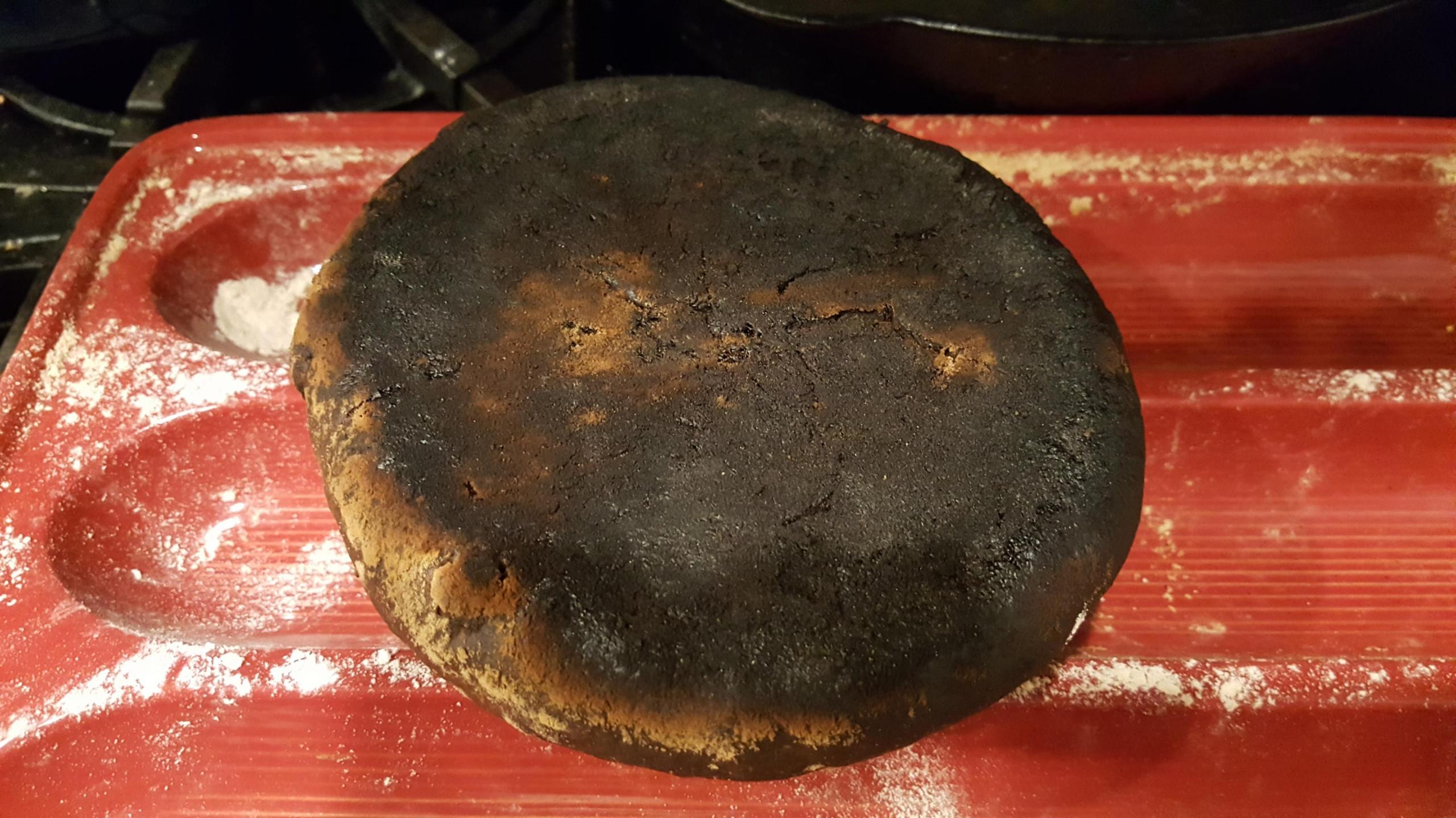 2. I took the lid off after 35 minutes instead of 45 minutes. Then I let it brown 5 minutes longer without the lid. I had used a Chef Alarm last week to test the high and low temps of my oven while set at 400°F, so I knew my oven ran hot. I had my oven set at 375 instead of 400, but it still went to 415° a couple of times. The average stayed around 400-410°F actual temperature. The bread had a very hard crust. It was very crunchy and way too dark. Overcooked, for sure, with a burnt taste.
