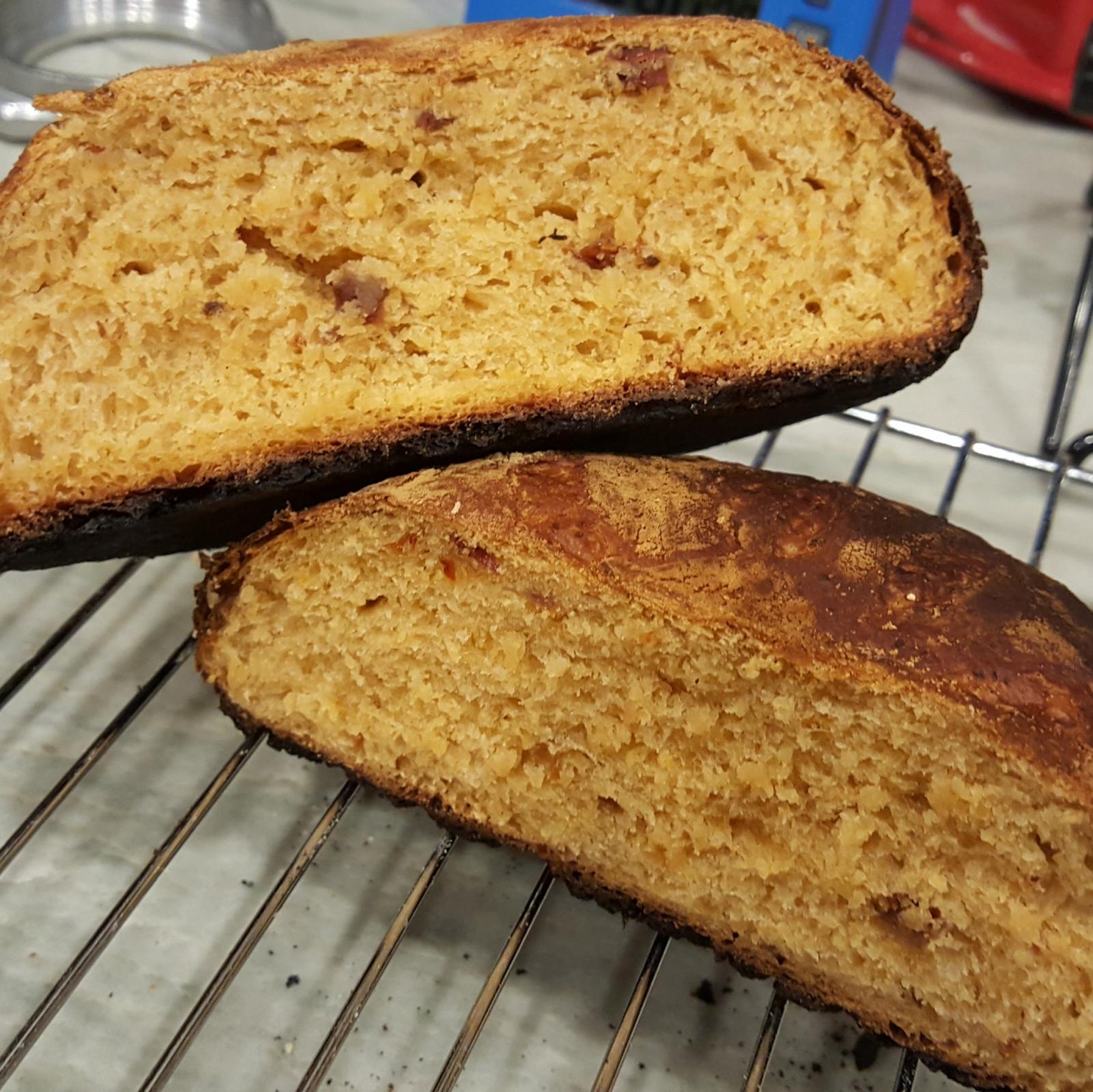 I tried a new recipe today. Sun-Dried Tomato baguettes. Flavor was wonderful, but it burned again before the time was up.