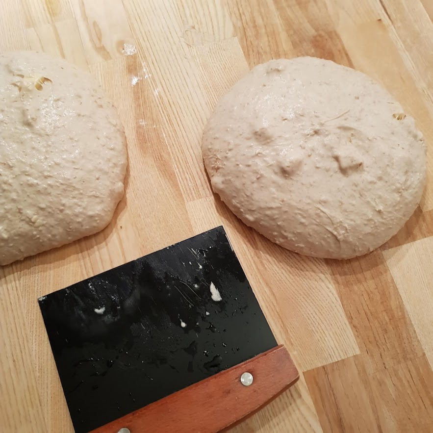 Arounf 18:45 both loaves went into baskets and into the fridge for overnight proofing.