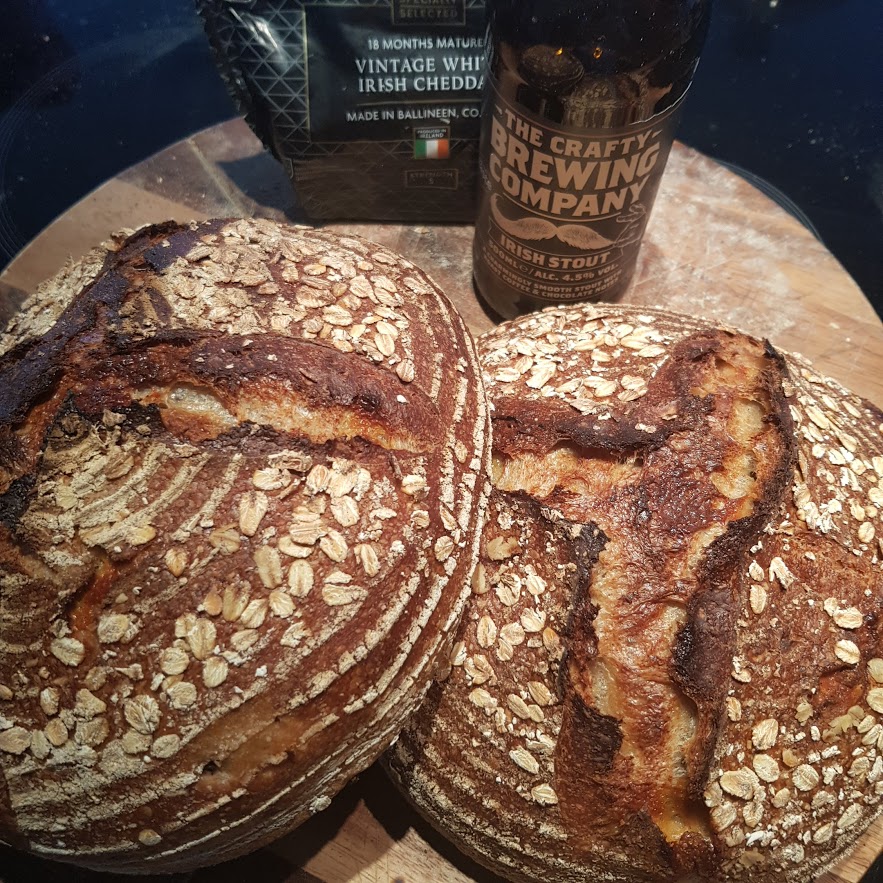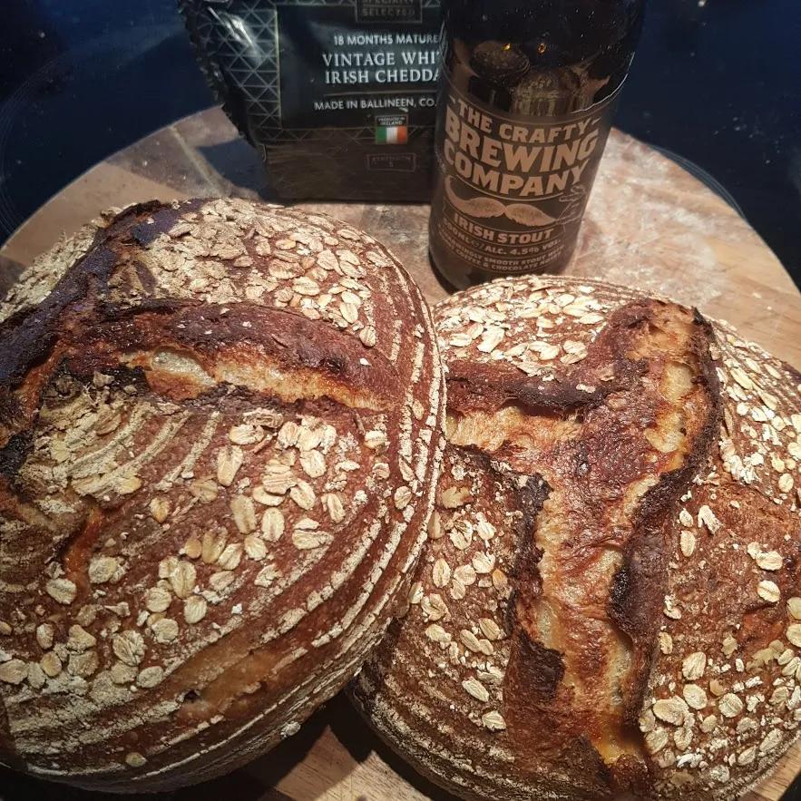 Decided to make my first adventurous sourdough an Irish one and also wanted to bring porridge into it as i haven't tried that yet. So i settled with a strong cheddar + stout/oat soaker. I was thinking the stout soaker would be a good idea as the oats would soak up the stout/alcohol and wouldnt effect my bulk dough performance as much to try make the results a bit more predictable.