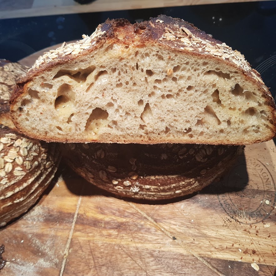 | Total Flour (inc oats & leaven) | 1,100 grams | 100% |