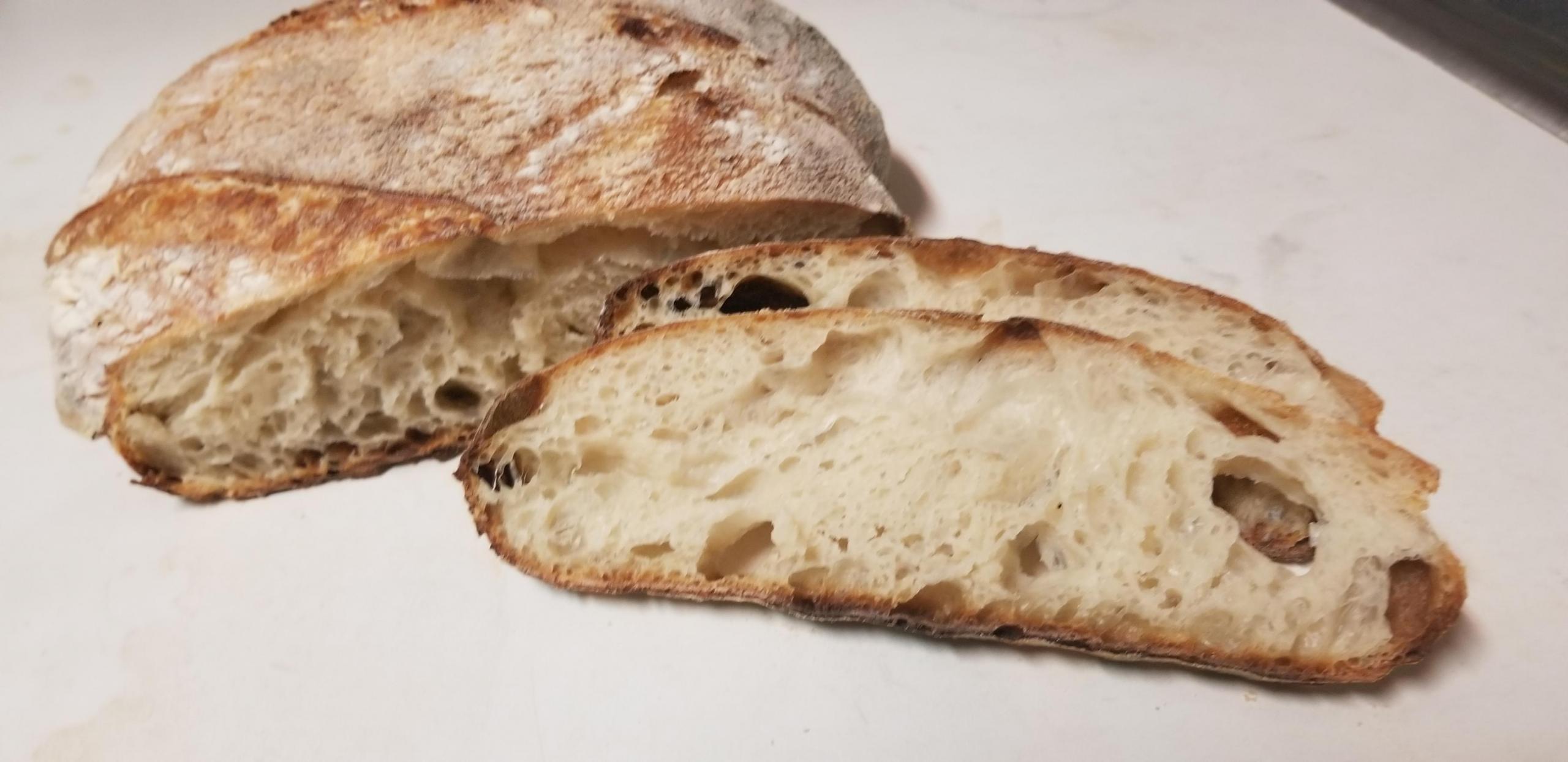 For many months, I made the same loaves, week after week. One third wheat flour, 77% hydration, 1/12 inoculation. Stretches and folds for development, no kneading (at which I was terrible). 36-60 hours in the refrigerator during bulk. I think they were chronically underfermented during bulk (especially after the weather got cooler, for which I made no adjustment at first) but I was pleased with the size and shape of the loaves and they were certainly good enough for sandwiches for lunch.