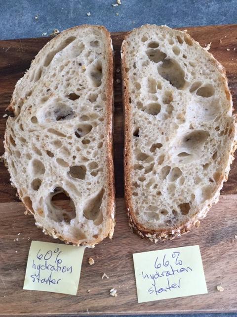 % difference in hydration of the starters will taste any different either at least not for my taste buds - but this bread is still killer. Well done and happy baking Leslie