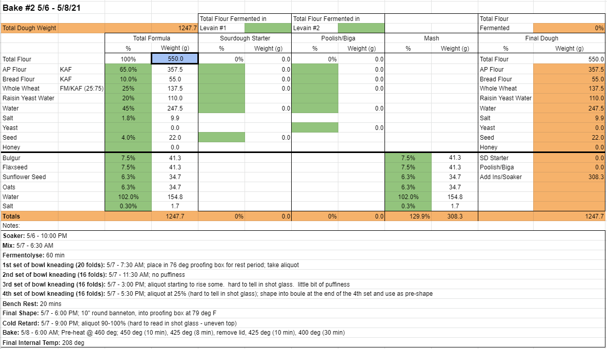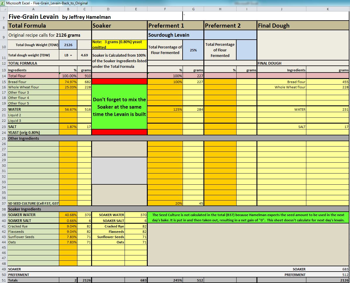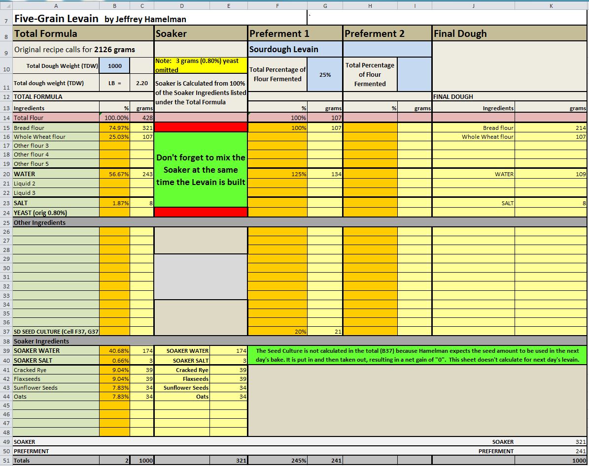 I've included an additional image of the spreadsheet for those that want to bake a smaller batch. The formula is for 1000 grams, but you could easily divide each ingredient by 2 in order to make a 500 gram loaf.