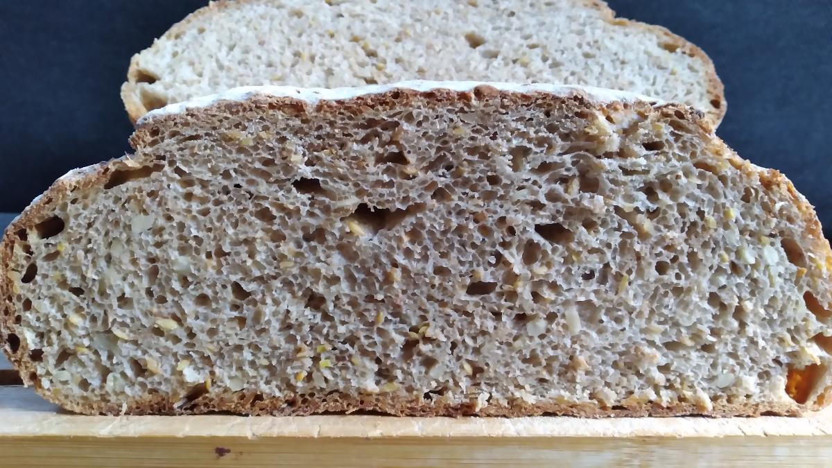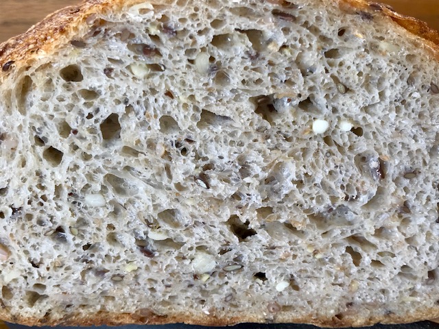 It looks great.  Surprisingly open for a loaf so heavily loaded with soaker contents.