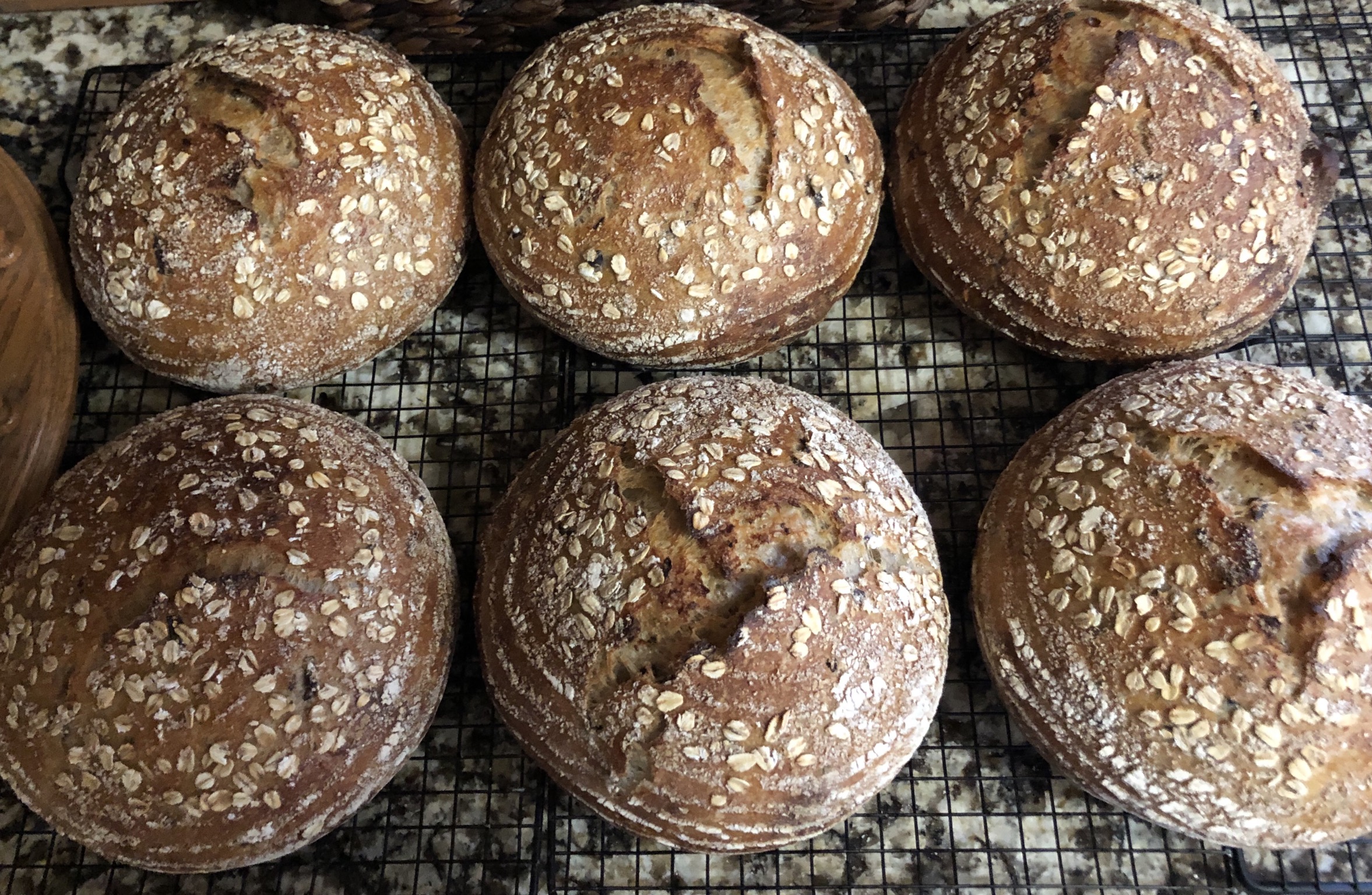 I love this bread! Just be aware that the hydration makes for a very wet dough. I really should have read my notes from before where it mentioned that this dough was quite wet. It does come together with the stretches and folds but I really should have cut back on the water to get a dough that was a bit easier to handle. I also tried to streamline the procedure for the add-ins so that I wasn’t prepping each ingredient individually. By the way, did I mention that this was a very wet dough? ;-)