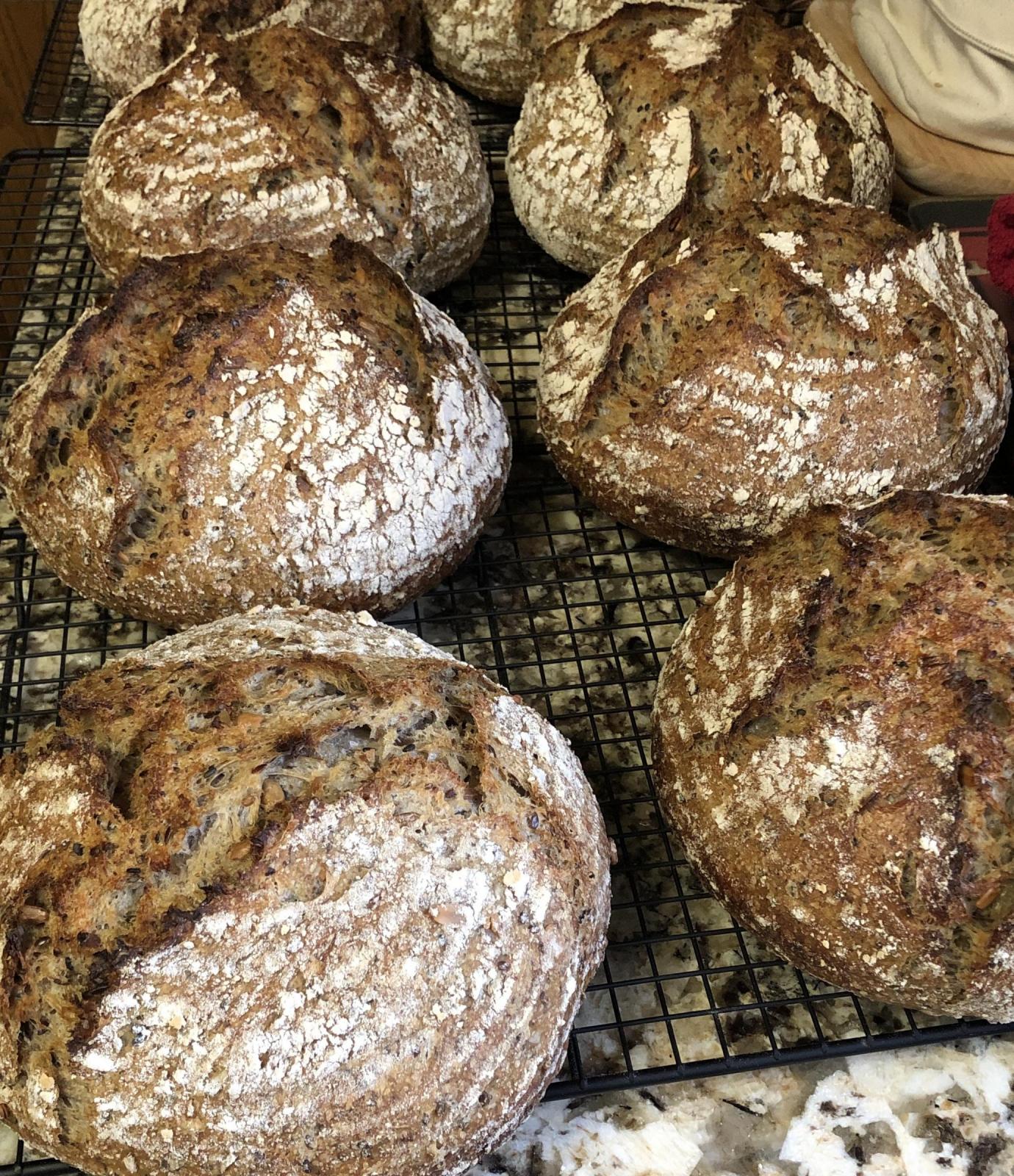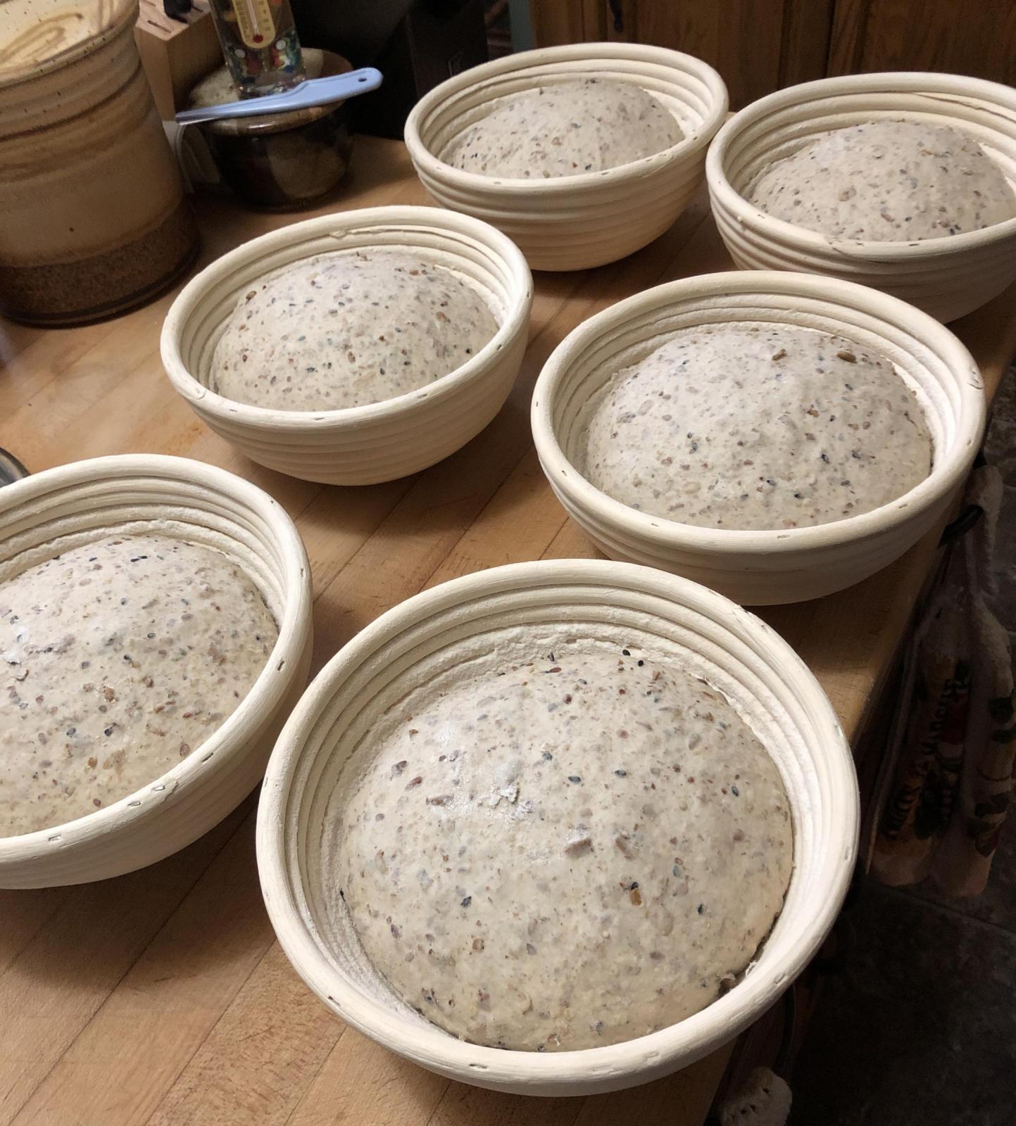 I proof the boules (hi-ex/AP) in the bannetons and the whole wheat loaves on couche.