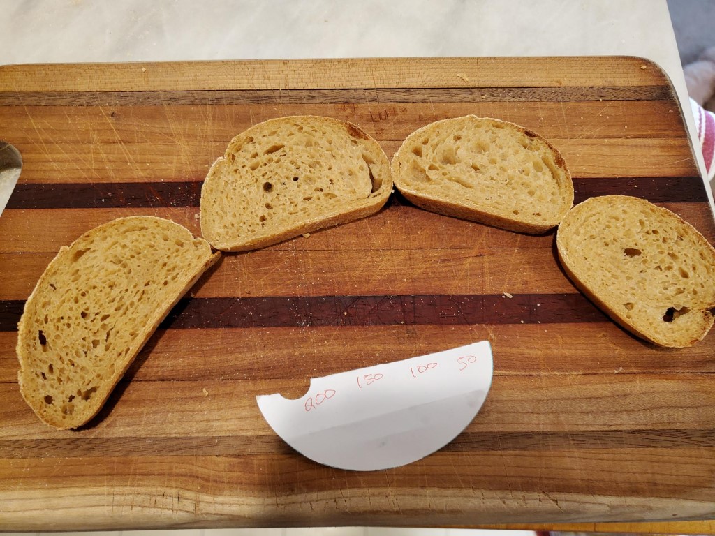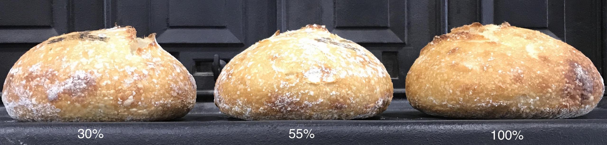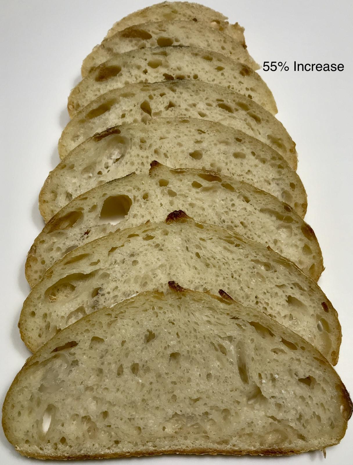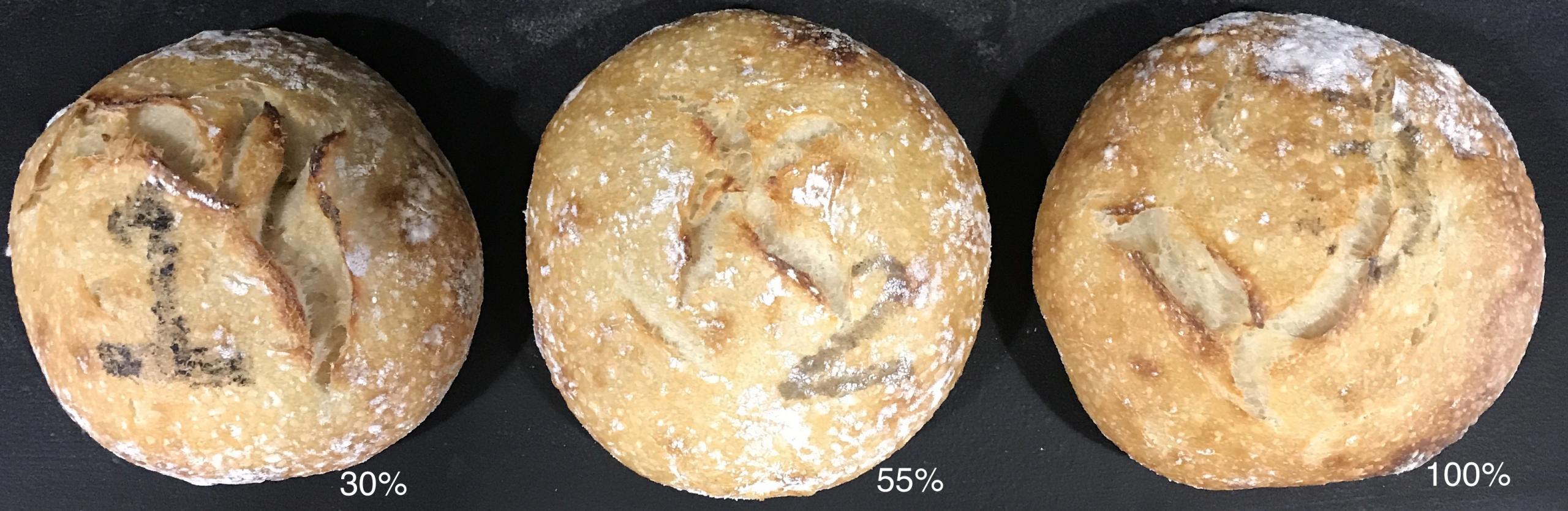 I like the cross section shape of the 50% loaf, but if I was picking a winner (IMO) I’d go with 100%. But I have to agree with you, the differences a very slight. All slices look good to me.