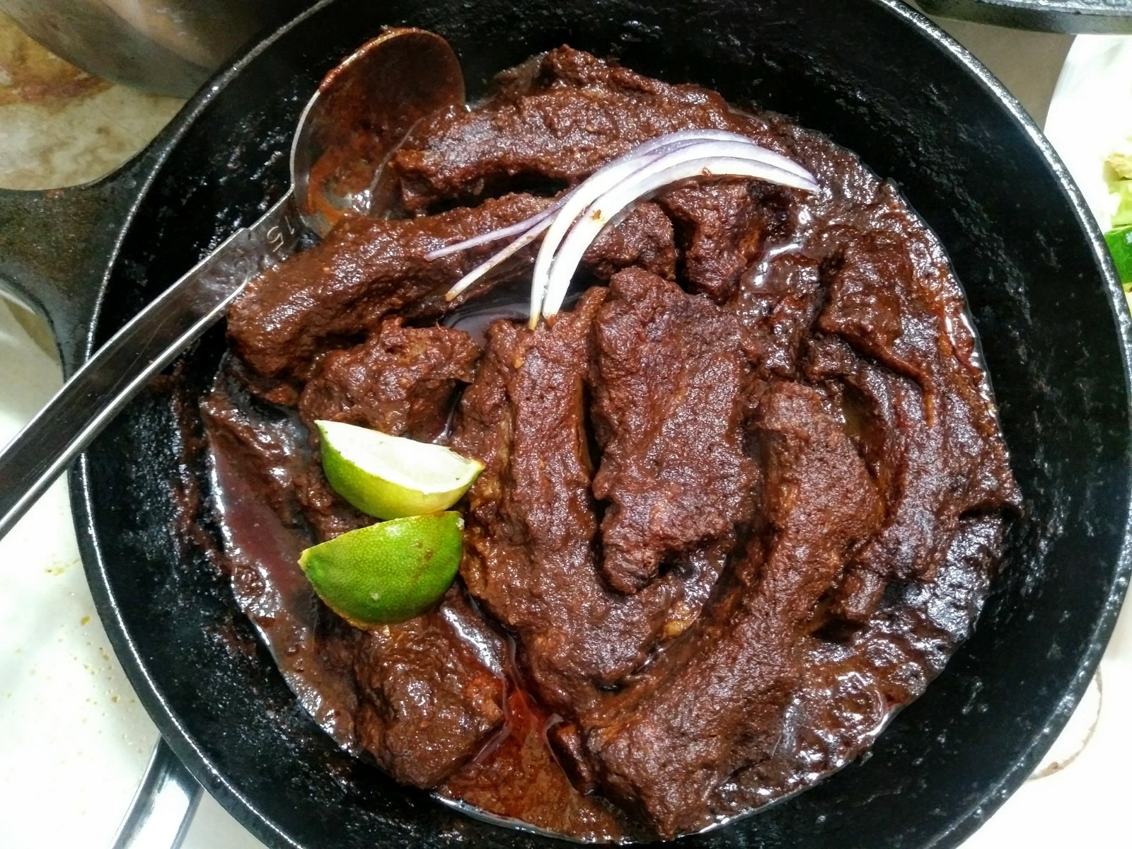 Ah, not burnt :) Ribs in a rich ancho & guajillo peppers sauce
