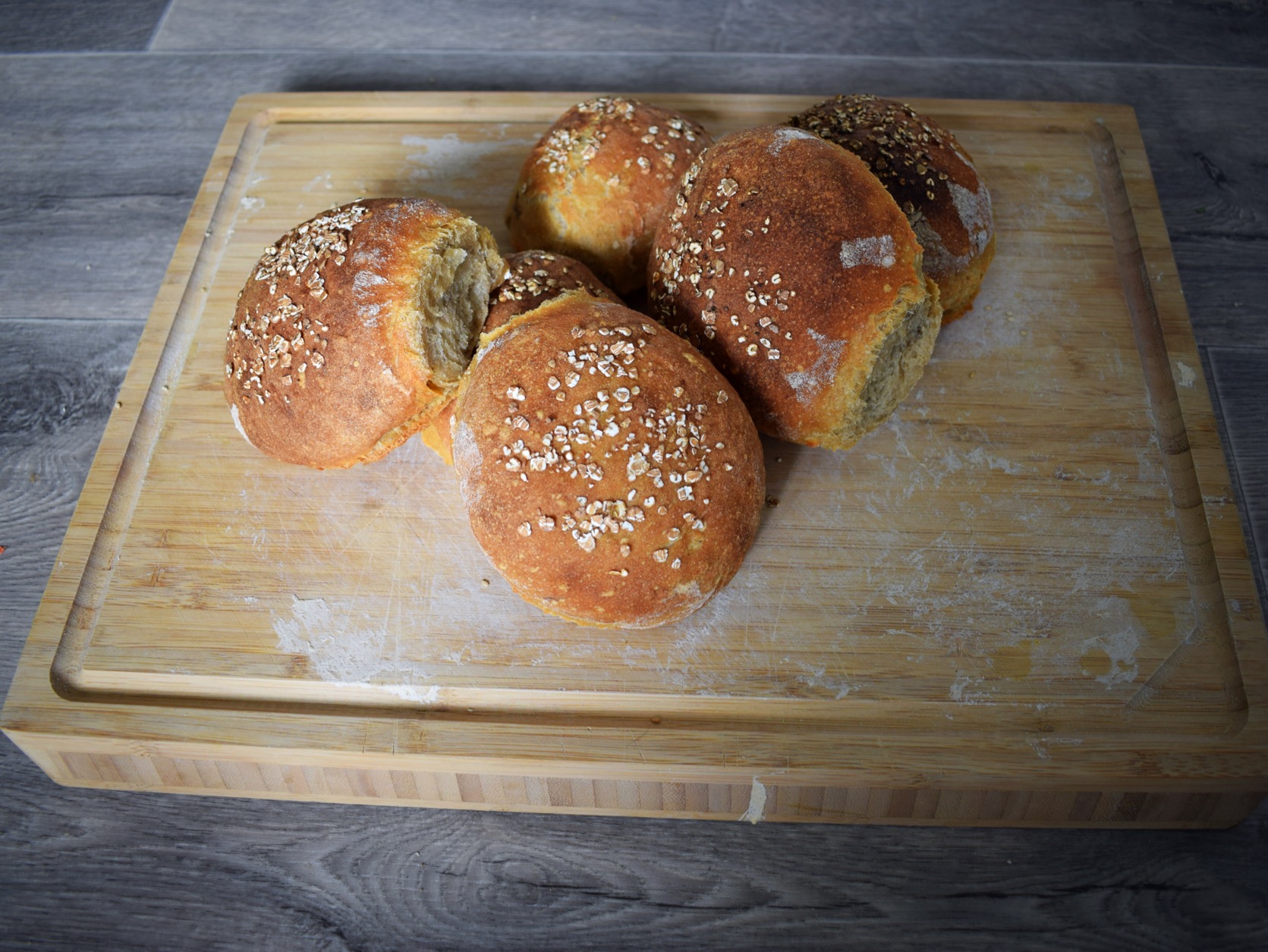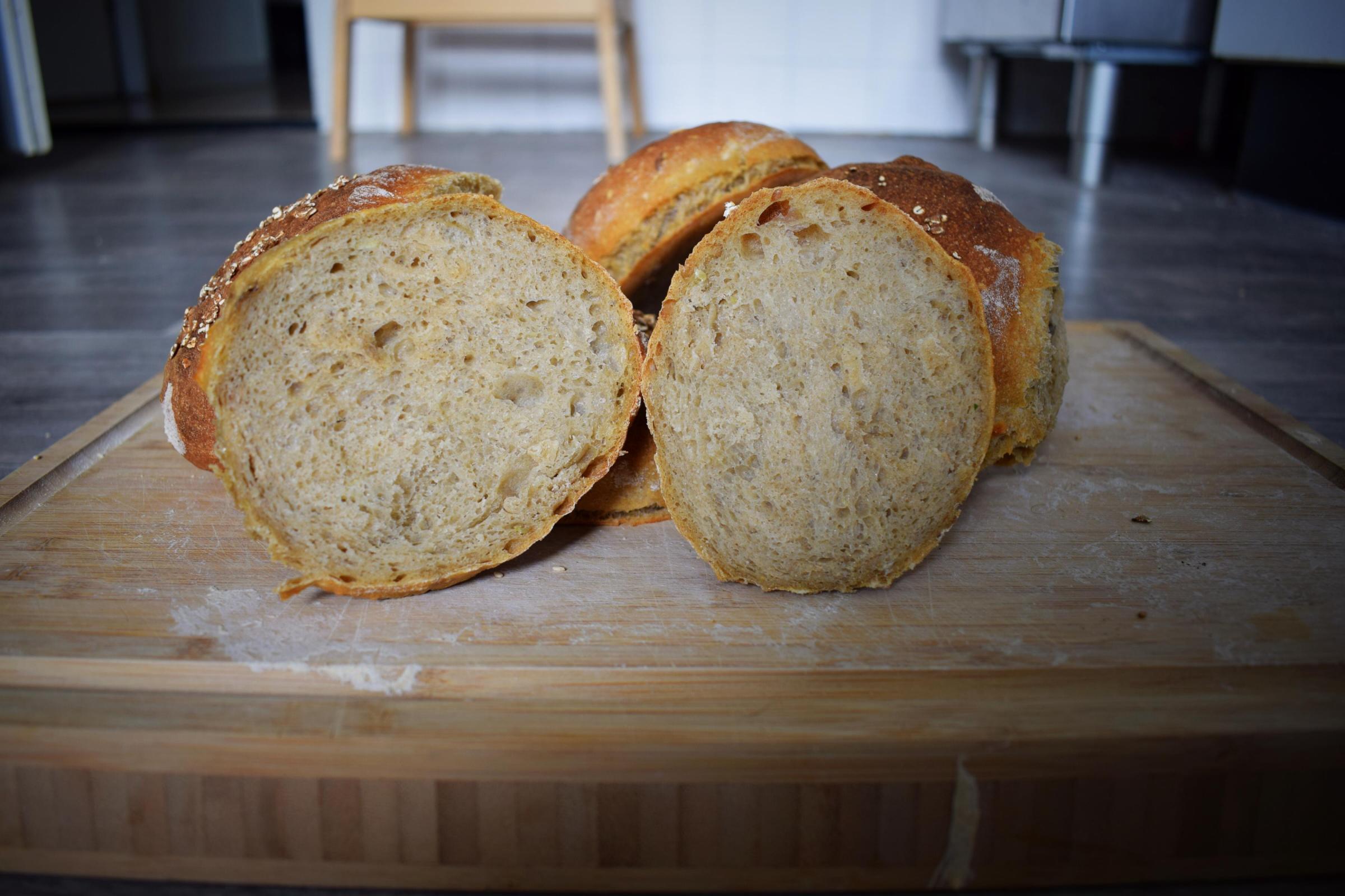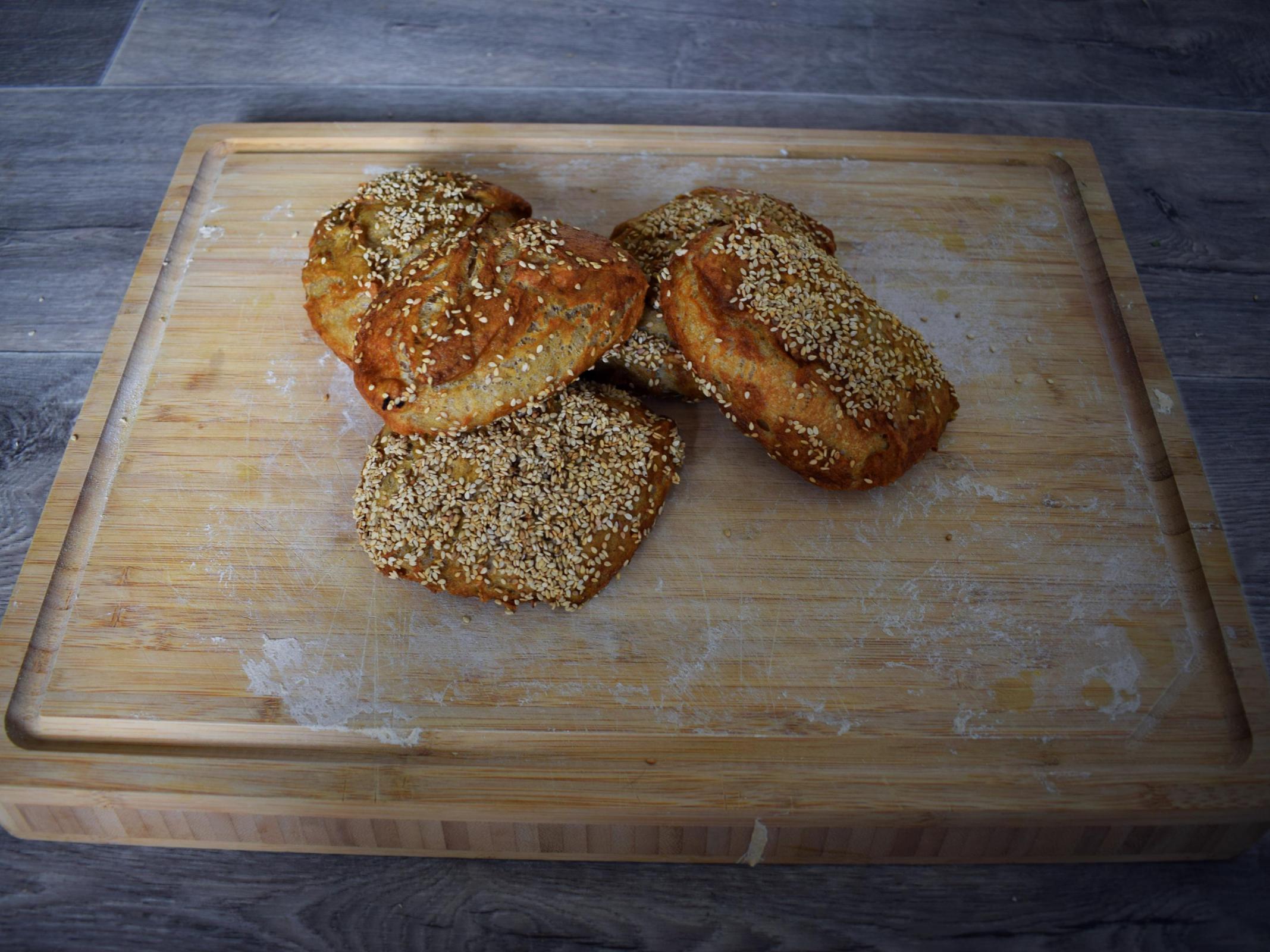 My rolls turned out prettier, it's a 50:50 mix of WW flour and cooked potatoes. I used yeast rather than my SD starter.