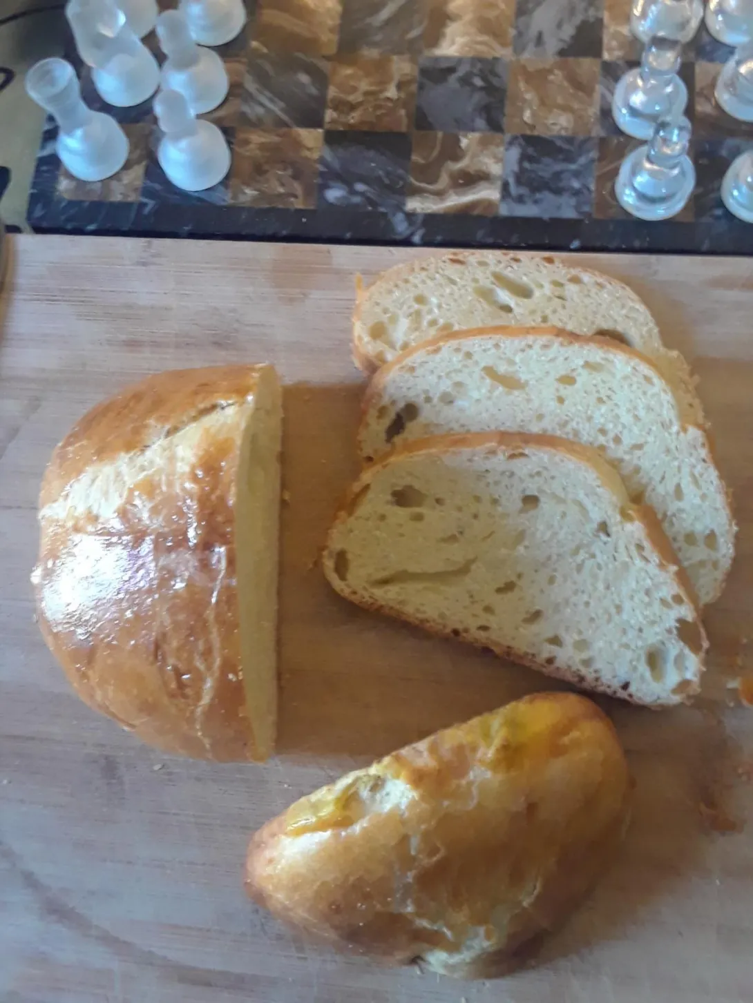 The bread was very rich, tasty, the caramelization from the egg and sugar was the best part. That being said, you can't taste much of the starter's influence, there is no WW flour to make the flavor interesting, and the texture is a little dense for my taste, even if the bread melts in your mouth. Its good on its own, and PB or butter would make this too rich a snack. I don't really like jelly, and the bread is too rich for sandwiches, IMO. I just don't have a use for this kind of bread, as delicious as it is, so it will probably be my last for a while.