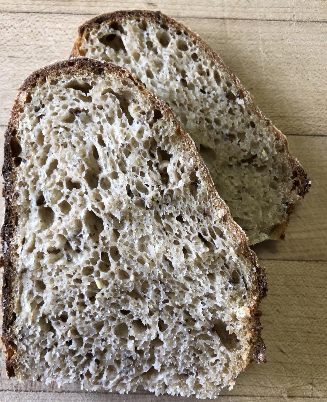 The oven spring could have been a tad better especially when I increased the amount of flour compared to my usual base amount. I guess all that water that the groats absorbed had a bit of a negative effect. Next time, I need to add just enough water to cover the Groats and not add extra when it gets absorbed.