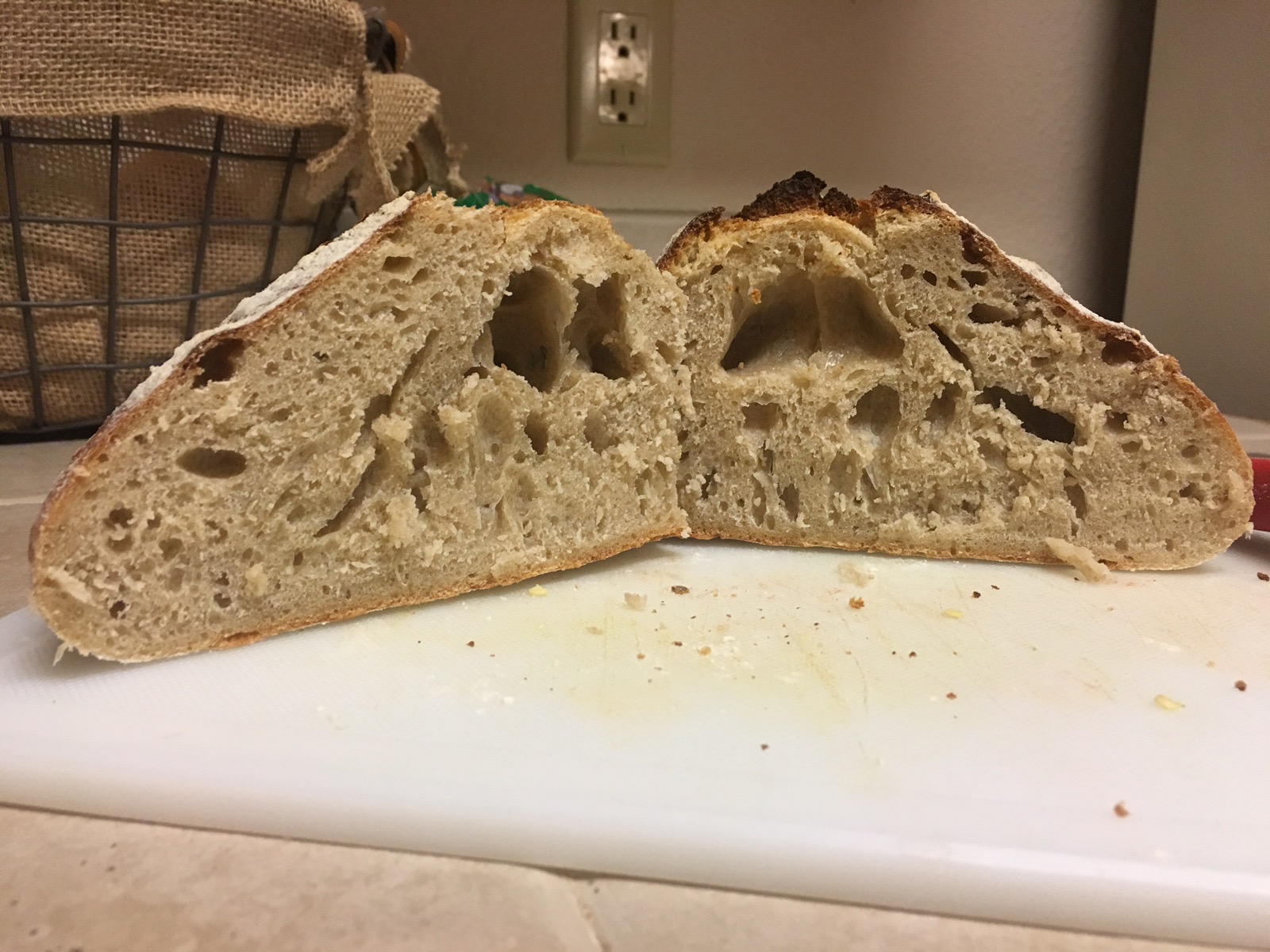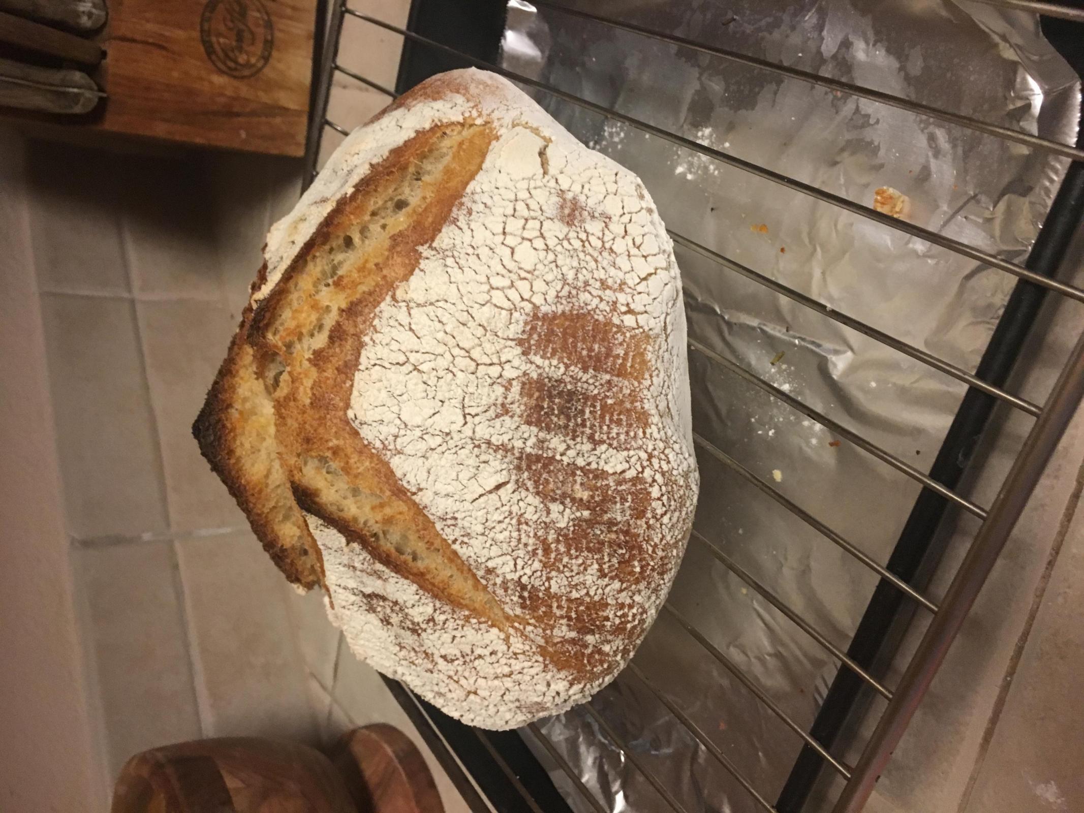 First off, thanks for the magical bread inspiration. After lurking here for a while and becoming total obsessed with sourdough bread I attempted my first loaf. I've had my starter going for almost two weeks and kinda jumped the gun. I did a slightly modified version of a Vermont sourdough. I used all-purpose flour and Whole wheat flour.