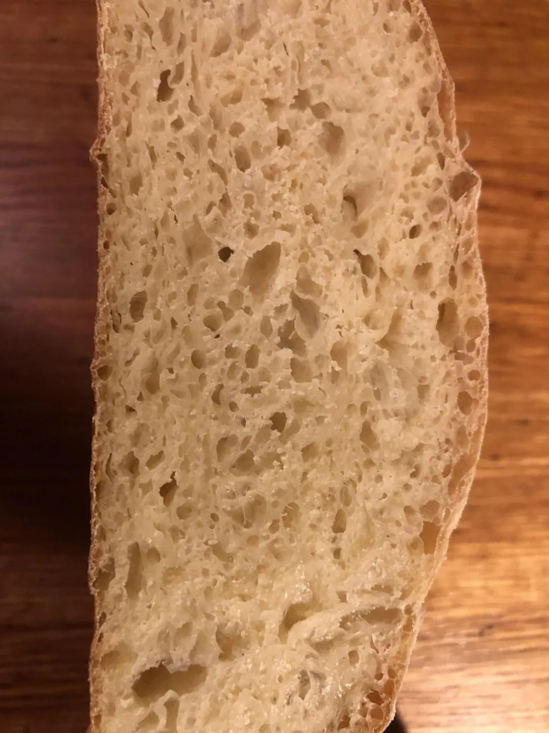 Thanks to some very detailed posts, some beautiful photos, and troubleshooting advice on my first attempt with the Bread Baker’s Bible Pugliese recipe, I baked a loaf closer to what I had hoped. Chewy, moist interior, and crispy crust.