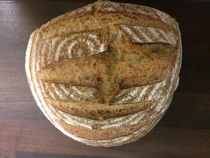 this time i mixed, kneaded, left dough out for 45 -60 minutes max and then retarded for 24 hours. Next day I took it out - it was very cold as our fridge is small and fluctuates between warm and freezing - preshaped and left 30 minutes, shaped, left for 30 minutes and put back in fridge for 24 hours.