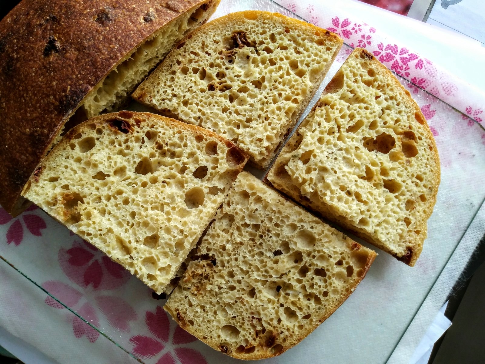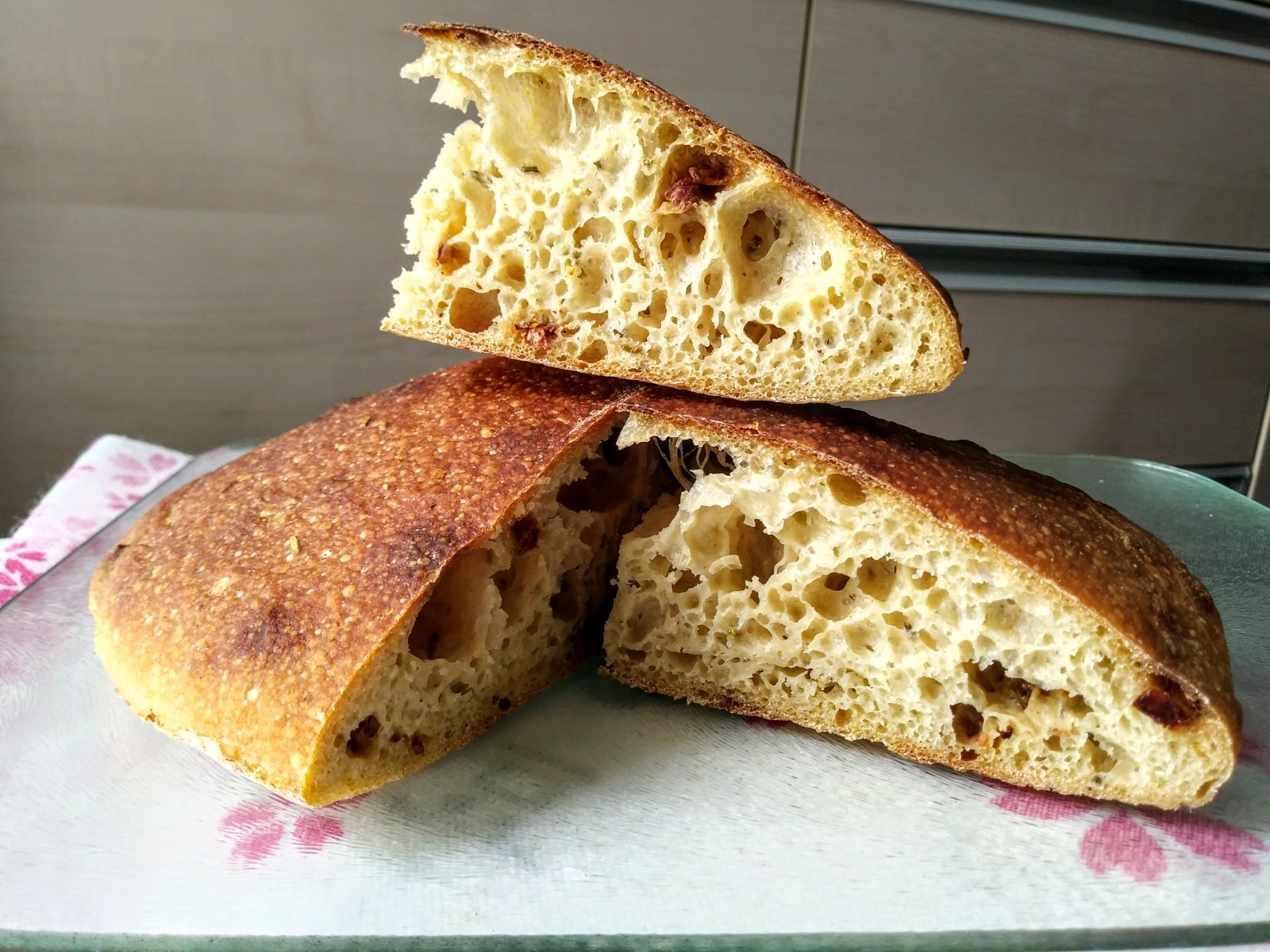 White sandwich bread of the week: 15% masa harina 15% amaranth ciabatta with sun-dried tomatoes & rosemary