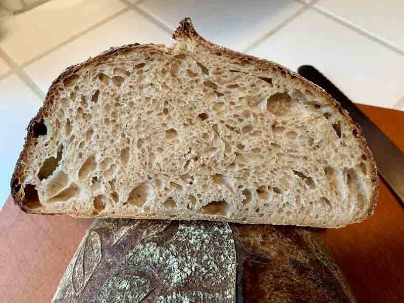 Now, I would not conclude that a 40+ hour cold retardation is a bad idea in general. For this particular bread, it did not provide an improved result. Not bad bread, but the first loaf was better, at least to my palate.