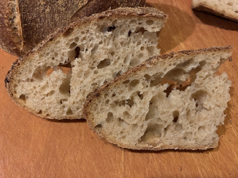 5% less whole grain and using all AP for the rest made for a better crumb in both cases I think and being more slack is also the result and expected to some degree. Love these experiments David. Happy baking !