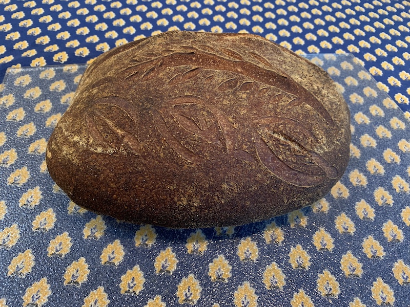 If baking on a stone turn down the oven temperature to 460ºF, transfer loaves to a peel, steam the oven, score the loaves as desired and load them onto the stone. Remove the steaming apparatus after 15 minutes. Continue baking for another 30-40 minutes. If you have a convection oven, set it to 435ºF Convection Bake for the last part of the bake. The loaves are done when they are darkly colored, sound hollow when the bottoms are thumped and have an internal temperature of 205ºF.