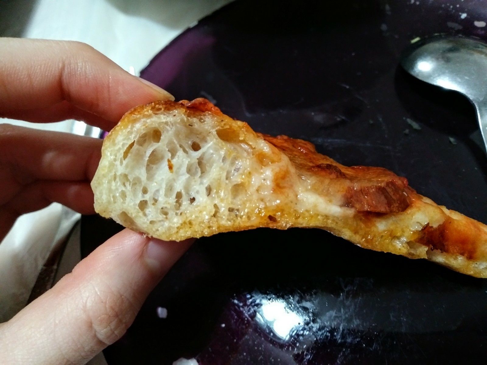 Preheat the oven at 250°C/482°F. Since the dough wasn’t ready for the oven, I let it proof for another 1 hour at room temperature. Score and spritz the dough then bake at 250°C/482°F with steam for 15 minutes then without steam for 25 minutes more or until the internal temperature reaches a minimum of 208°F. Let it cool for a minimum of 2 hours before slicing.