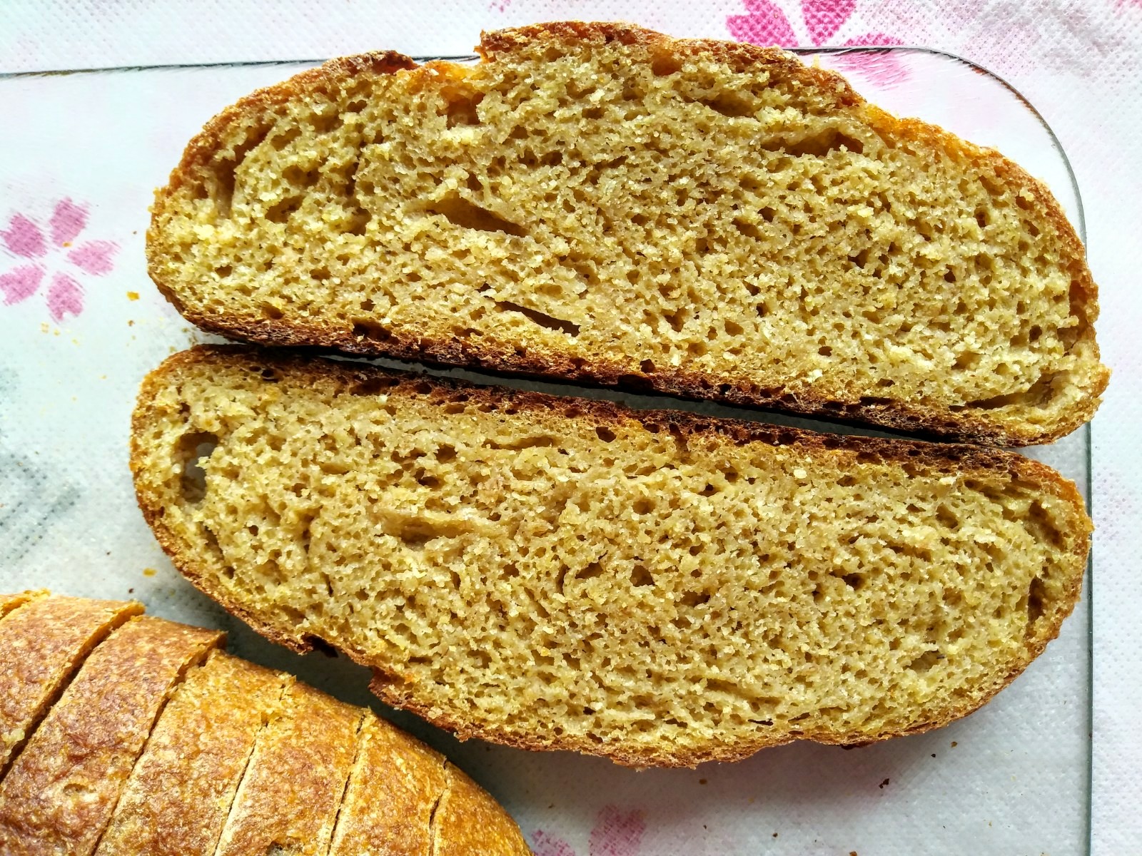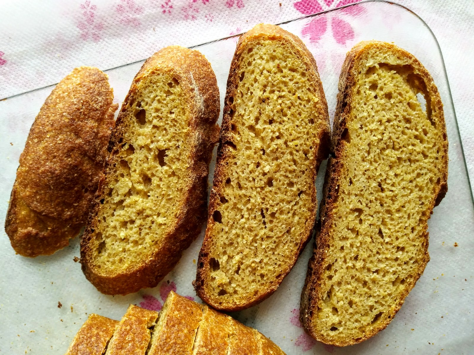 Look at that bright yellow crumb! The stunning colour alone is enough reason to bake with corn regularly. This bread doesn’t have a very open crumb because of the heaviness of corn. Yet, it’s still moist and isn’t unacceptably dense.